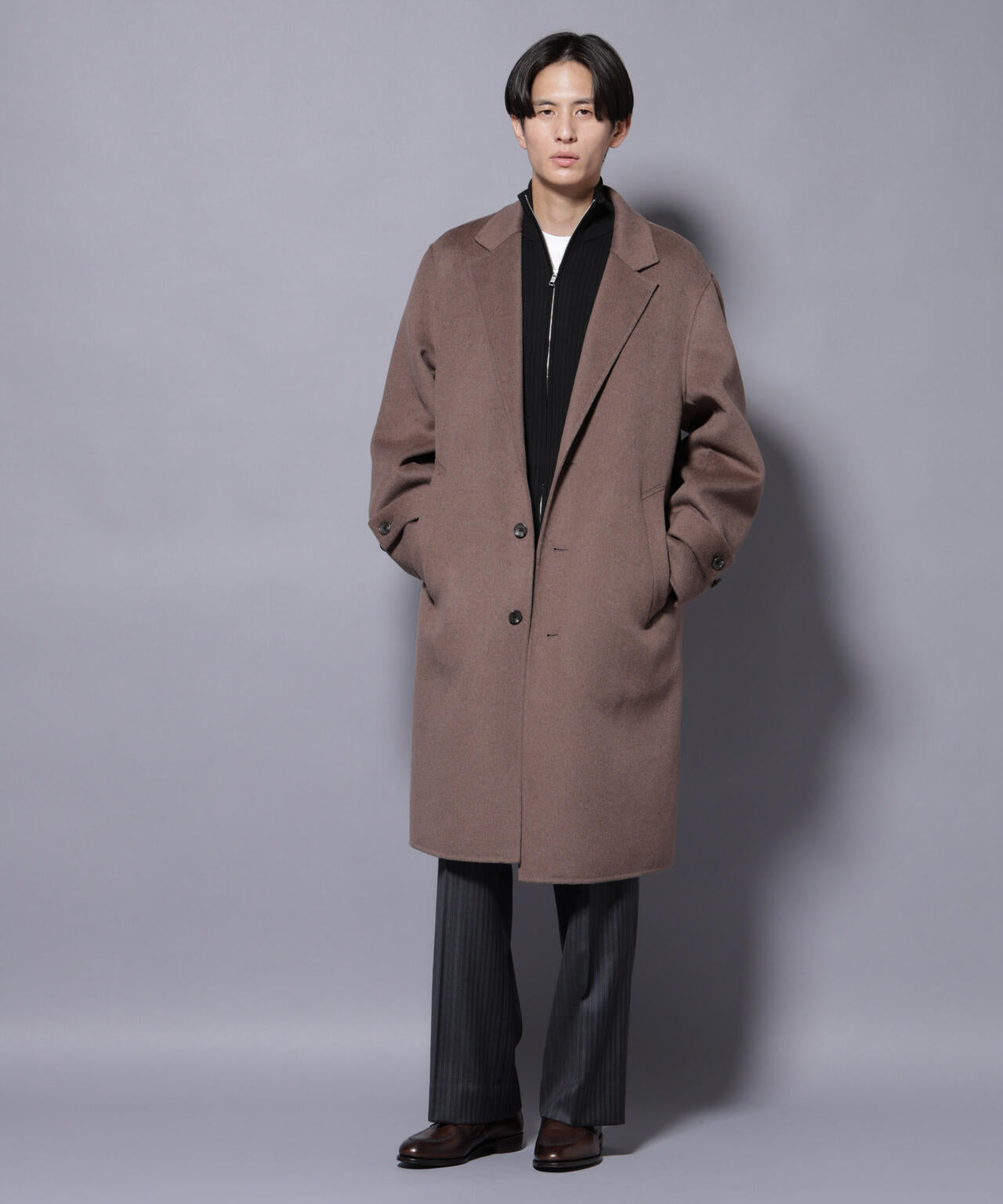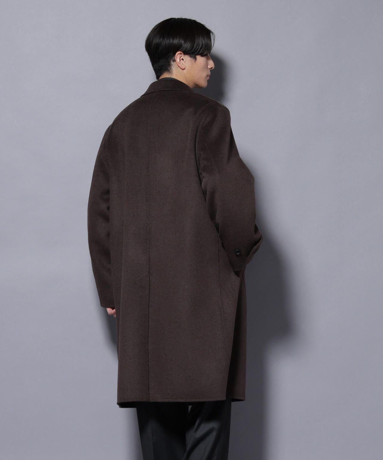 軽さと暖かさを兼ね備えた、上品なウールリバー仕立てのチェスターコート。一重仕立てのため羽織った時の軽やかさが最大の特徴。幅広く愛されるオーセンティックなチェスター型で、ONでもOFFでも幅広いシーンで活躍します。