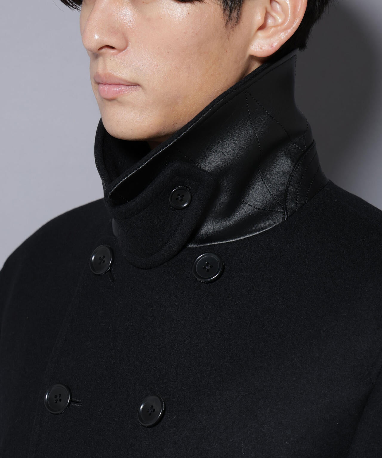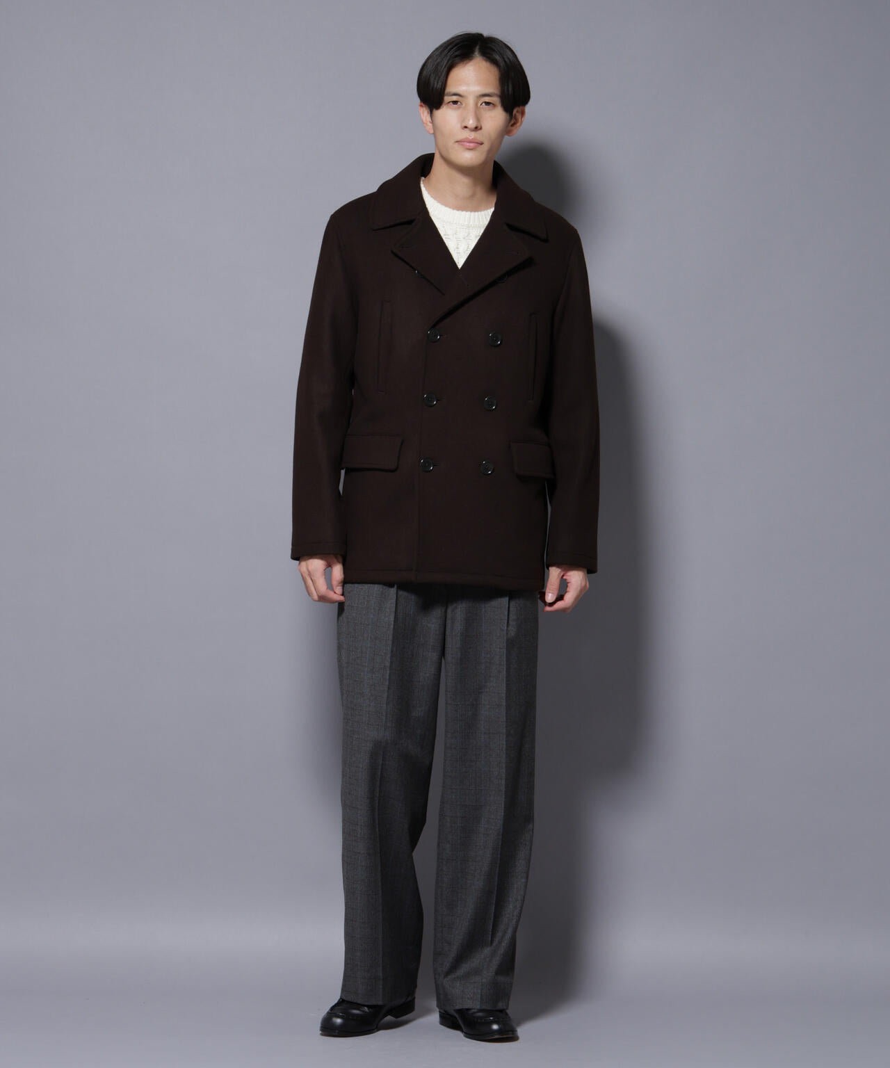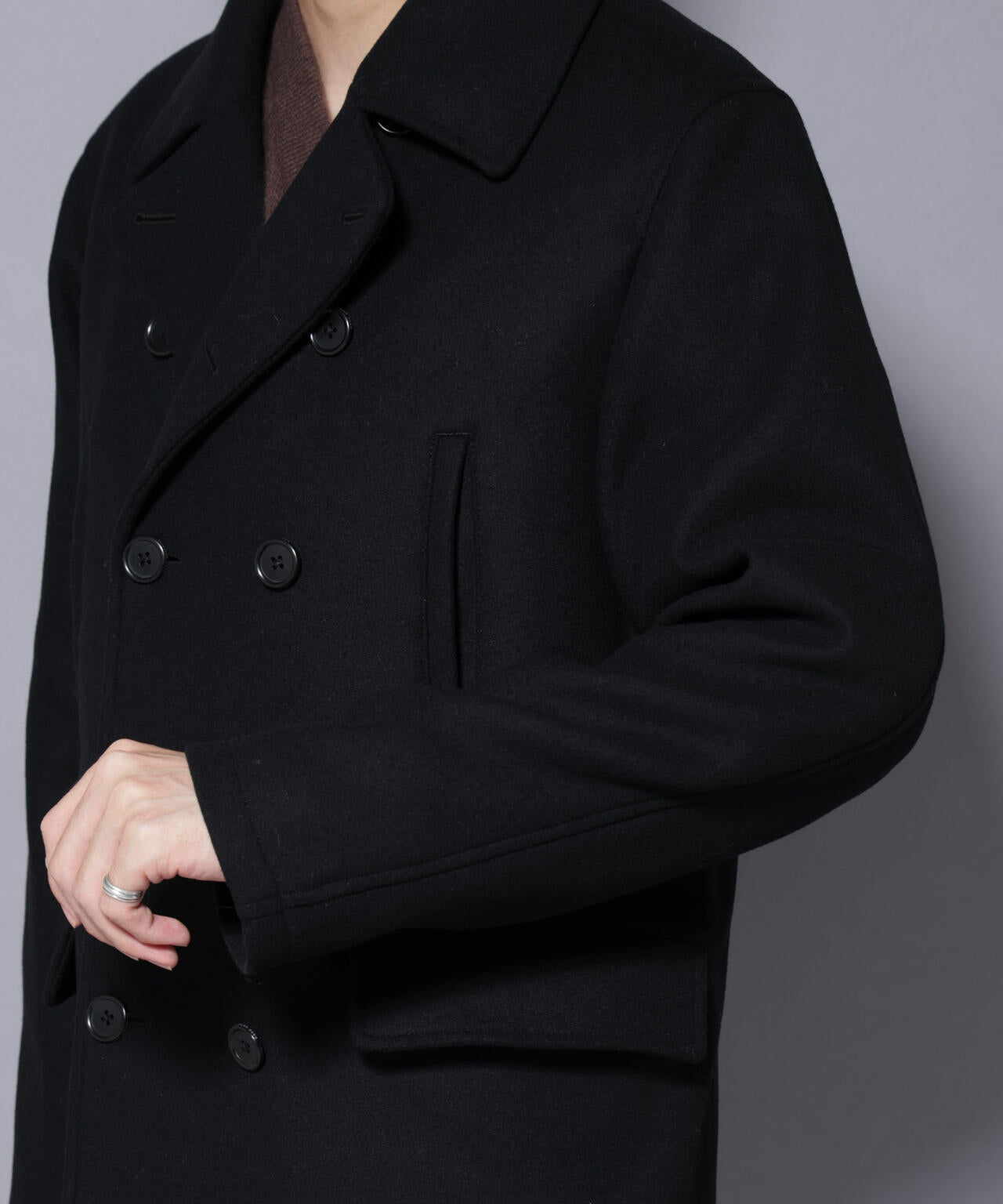 クラシックなU.S. NAVYの10ボタンPコートをベースに、現代的な感覚でややリラックスしたシルエットにアップデート。ダブルブレストの力強いデザインと、しっかりと立ち上がる大ぶりの襟が印象的な1着。