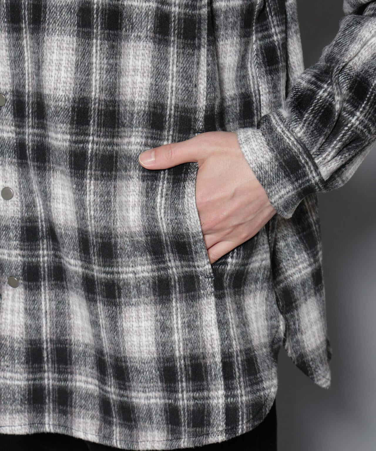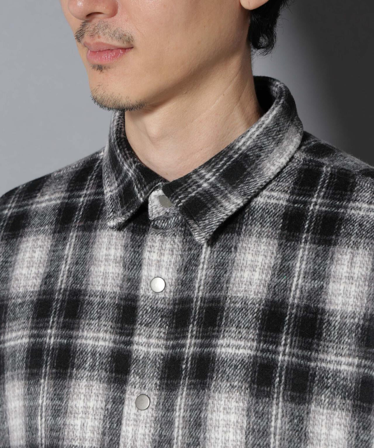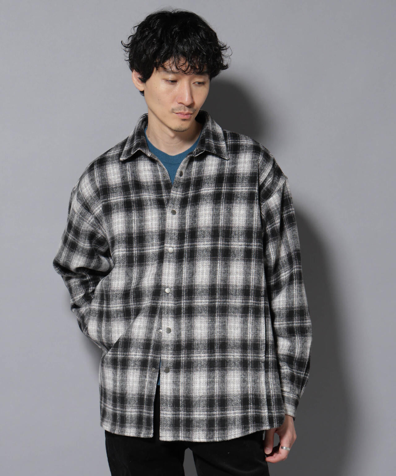 シャギー素材を使用した上品な印象のシャツジャケット。大人のカジュアルスタイルに重宝する1着です。