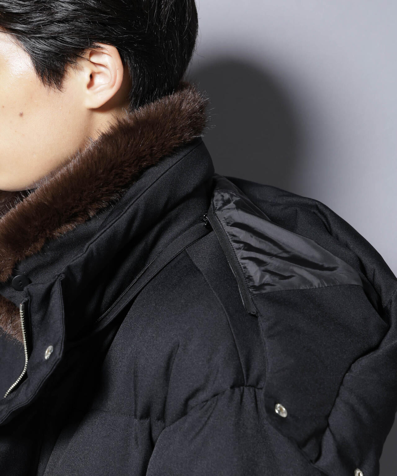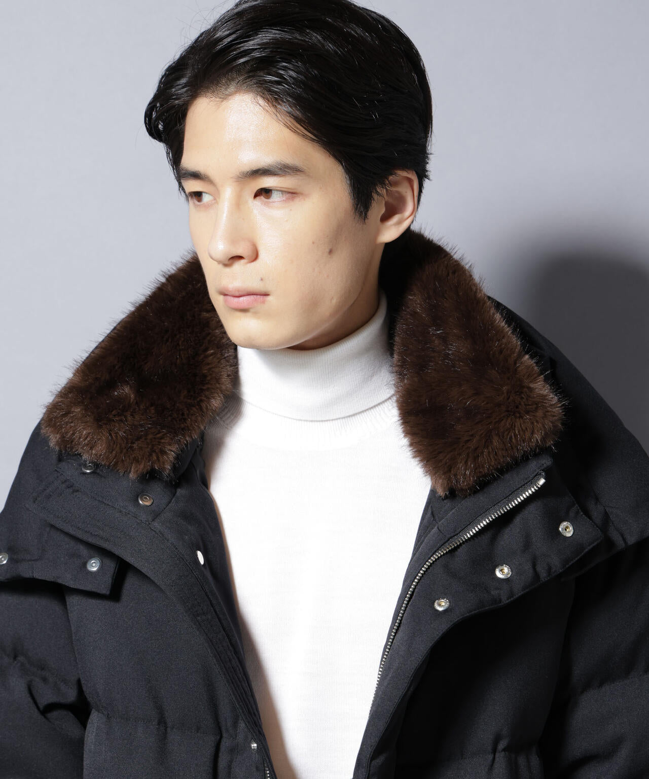 ボリューミーなフェイクファーと長めな着丈がメンズらしいデザインのサージロングダウン。ラグジュアリーな雰囲気を楽しんでいただく為、取り外し可能なフェイクファーを襟に採用。ONシーンでも着用いただけるスタンダードエレガンスな1着です。