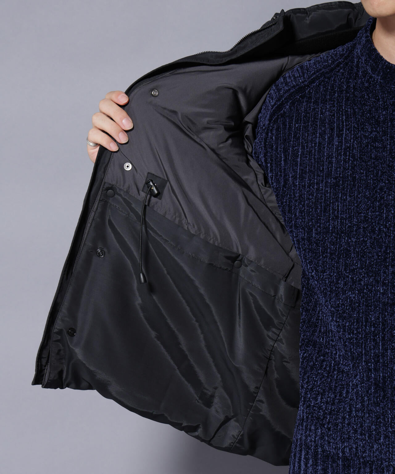 80Sのクラシックなアウトドアブランドのマウンテンパーカーの雰囲気を踏襲しつつ、ダウンジャケットにアップデートした一着。裾部分は着丈を伸ばすことのできる2WAY仕様にしており、焚火の時は強風の際に伸ばして対応が可能。火の粉が飛んでも穴が開きにくい難燃性機能を持ったファブリックを使用した、本格アウトドアへ向けたスペックアイテムです。