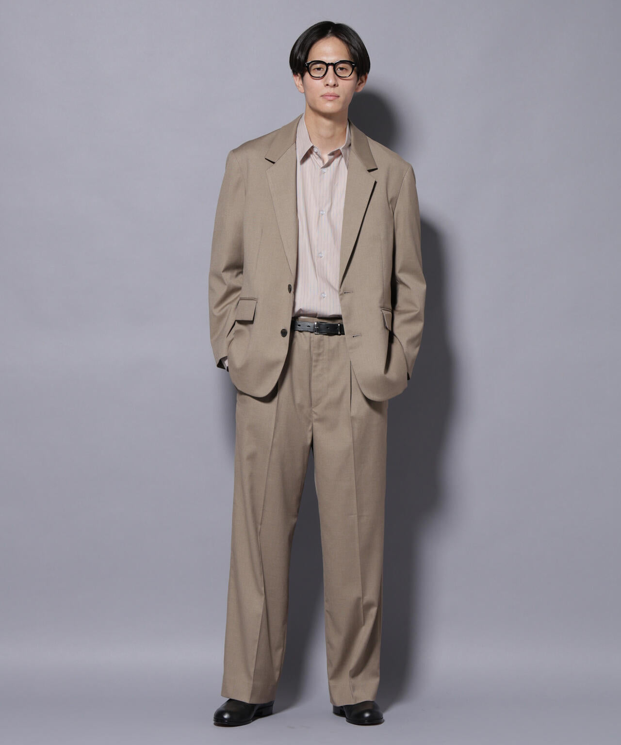 フランスの「DELEGANT社」の素材を使用したテーラードジャケット。ウールのような質感と上品な見た目の印象を持ち合わせながらも、ポリエステル・レーヨン・ポリウレタンの風合いと特性を活かした快適な着心地が魅力。シーズンレスに活躍すること間違いなしのアイテムです。