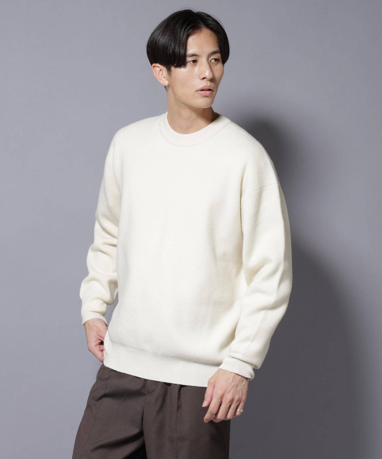 上品で柔らかいムードが特徴のカシミヤ混のウールニット。ベーシックながらもややリラックス感のあるシルエットが、今らしさを引き立てるアイテムです。