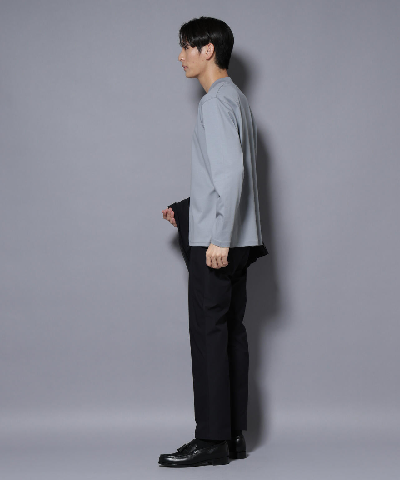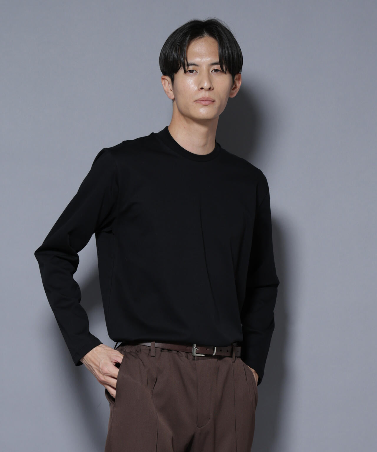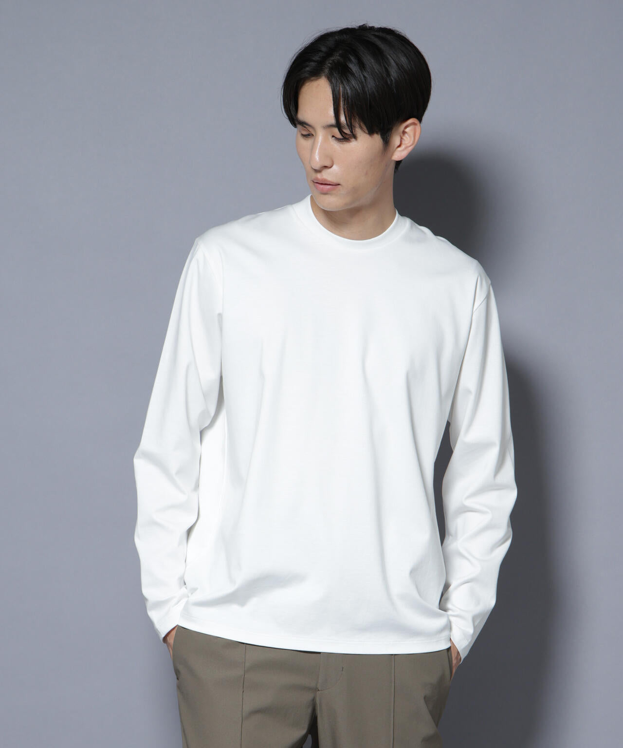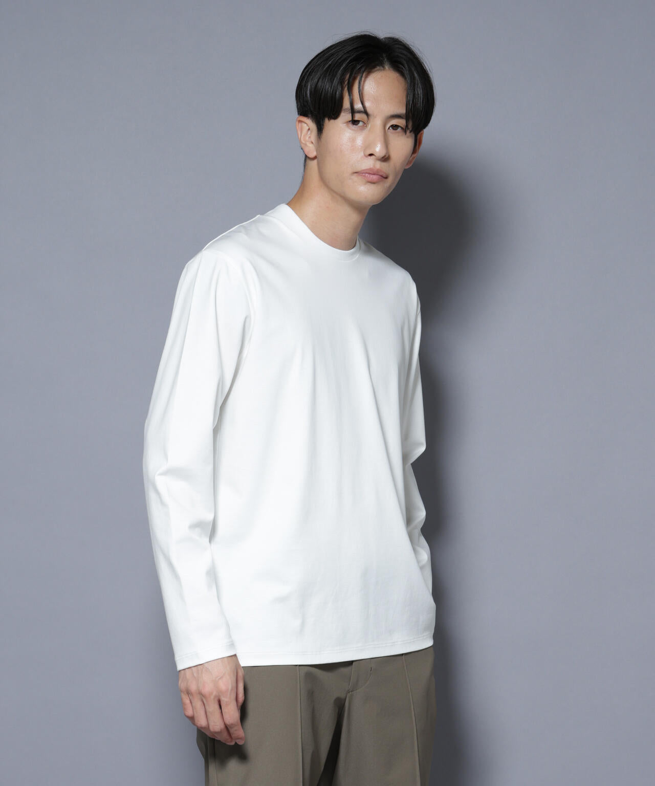 毎シーズン大人気のジャケット専用Tシャツ。クルーネックの後襟にかけてリブを高くし、首の後ろに触れるジャケットの襟裏に皮脂汚れが付きにくい絶妙なネックバランスに仕上げた一着。