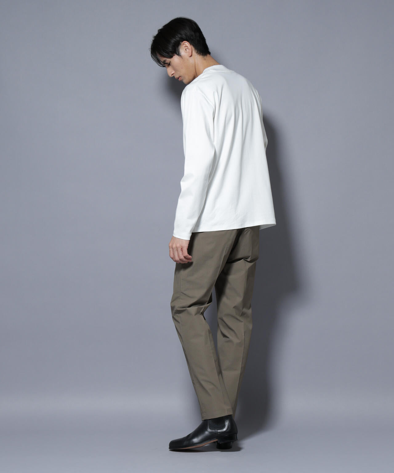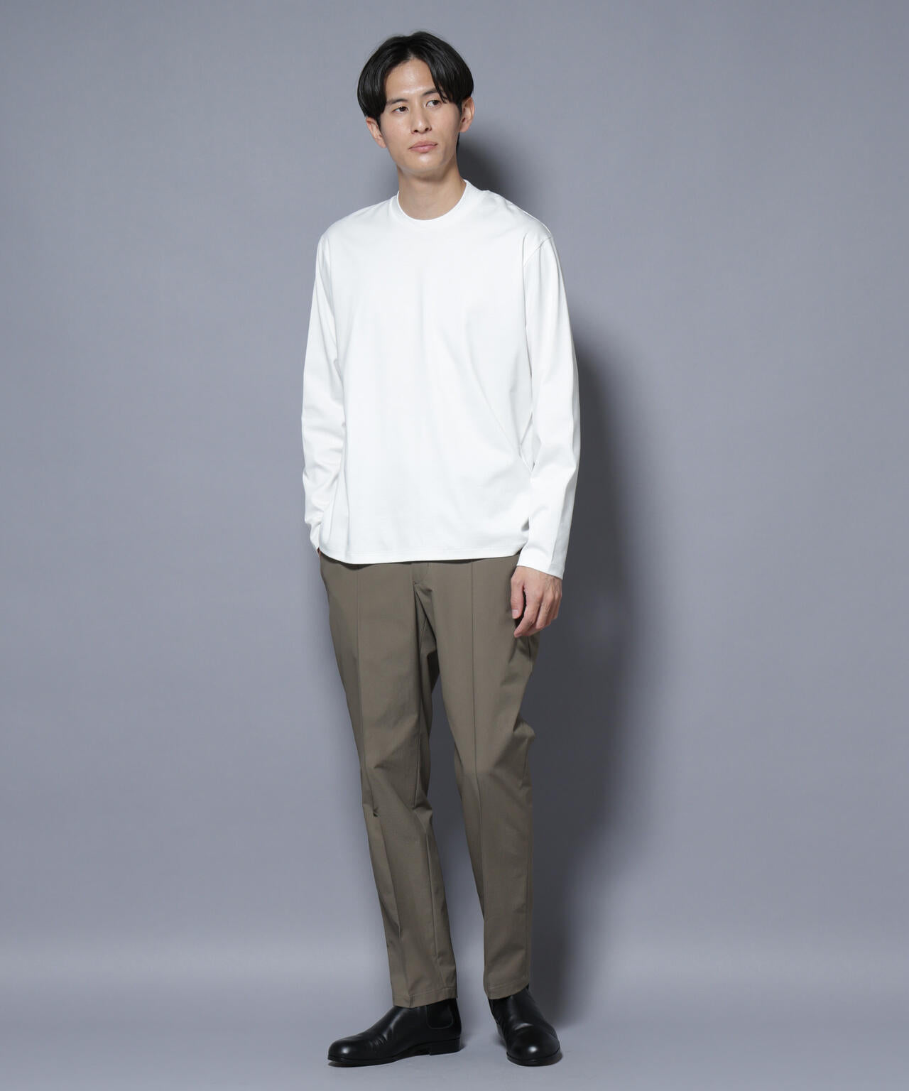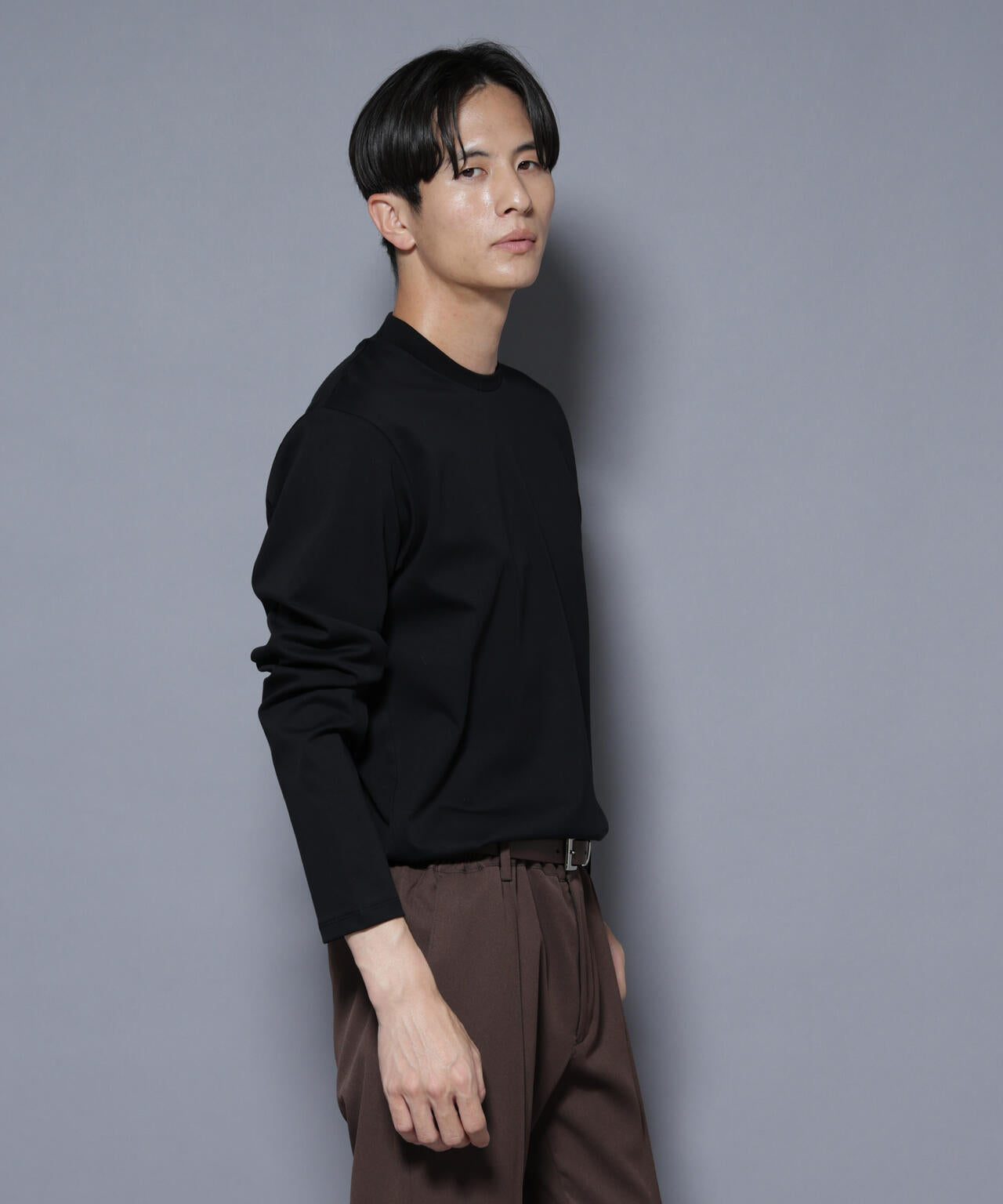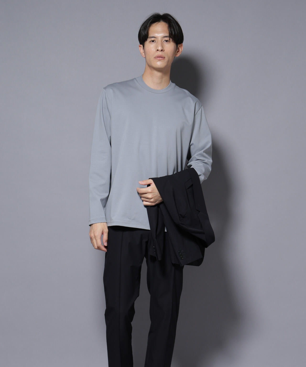 毎シーズン大人気のジャケット専用Tシャツ。クルーネックの後襟にかけてリブを高くし、首の後ろに触れるジャケットの襟裏に皮脂汚れが付きにくい絶妙なネックバランスに仕上げた一着。