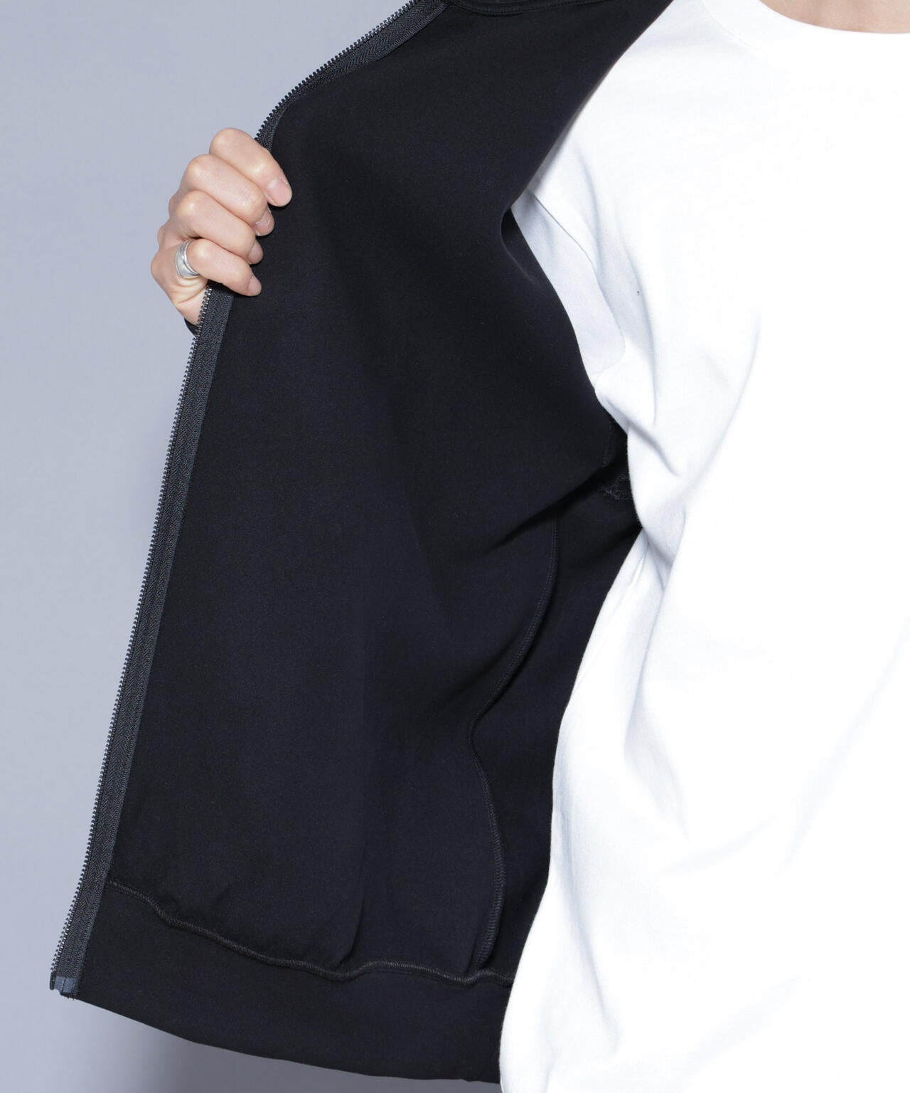 ストレッチ性抜群のカットソー素材を使用したフルジップ仕様のカットソーブルゾン。襟部分にはフェイクスエードを使用し、表情豊かなデザインに仕上げた1着。コートのインナーやライトアウターとしてロングシーズン活躍するアイテムです。