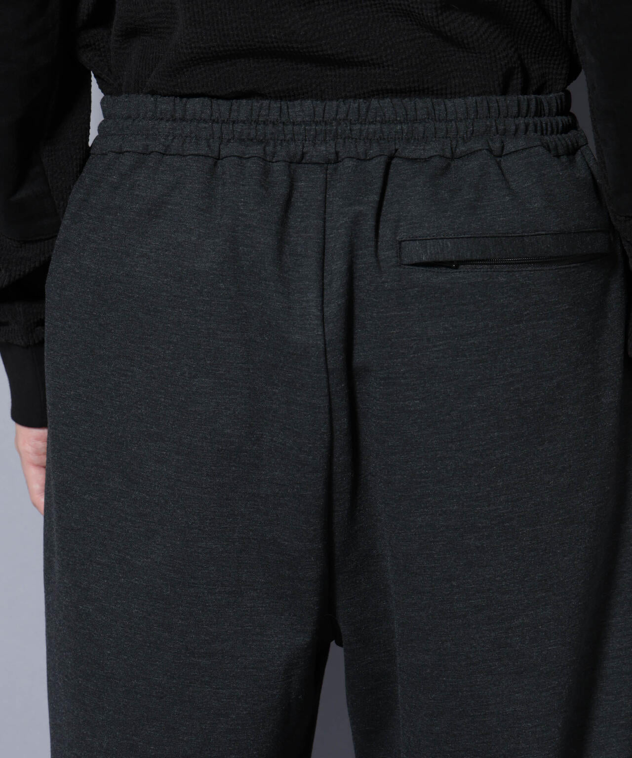 フランスの「DELEGANT社」の素材を使用したトラックパンツ。程よく膨らみがあり、柔らかな手触りや、杢調の雰囲気が特徴。他にはない独特な品と、艶やかさやストレッチ性を兼ね備えた、シーズンレスで活躍すること間違いなしの1着です。