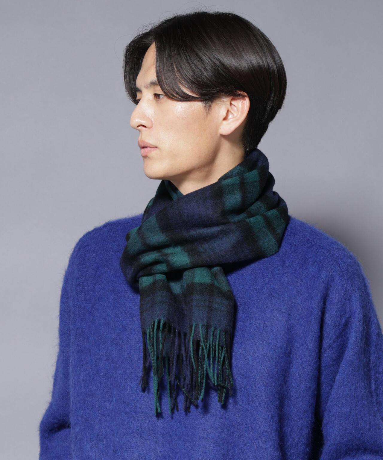 質なカシミヤをブレンドした、なめらかな肌触りが魅力のマフラー