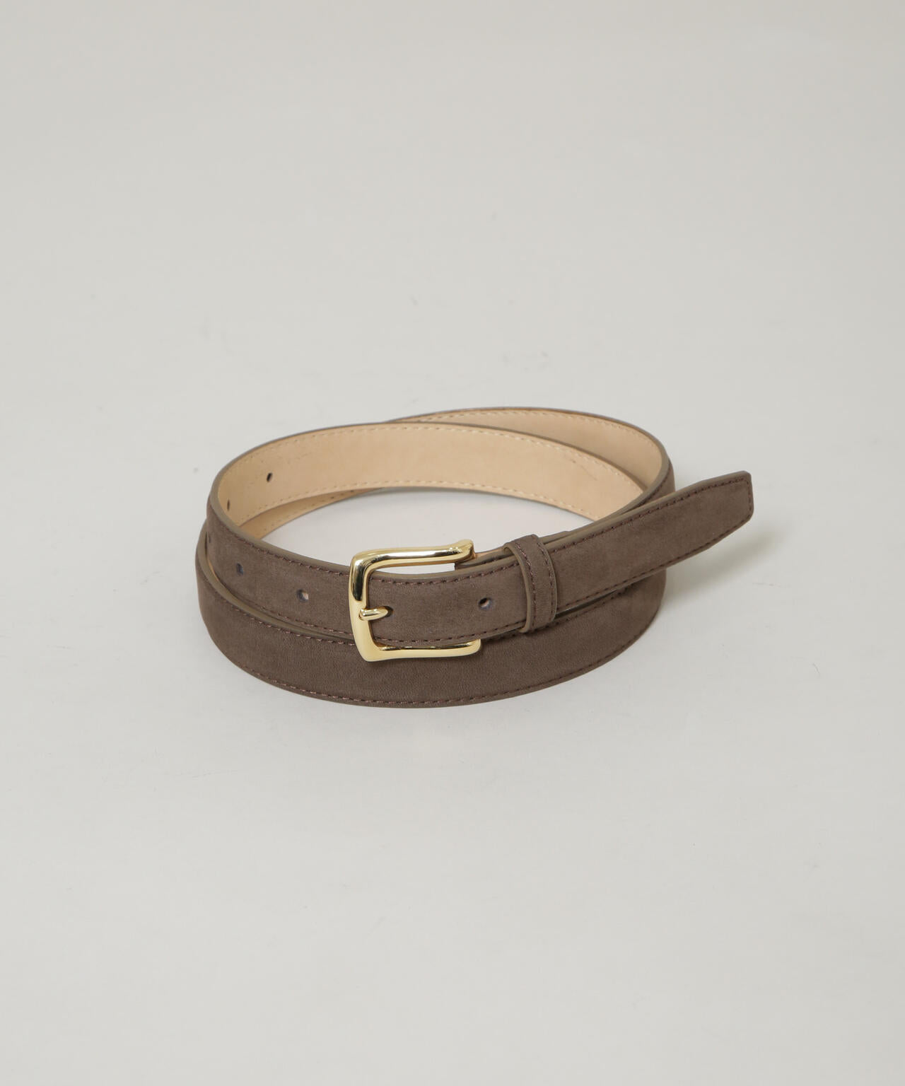 品のよいマットなヌバックを使用したベルト。昨今のトレンドであるスウェード素材やジャケット、スラックスなどに相性の良いアイテム。いつものパンツに合わせるだけで大人感がグッと上がる秋冬におすすめの一本です。