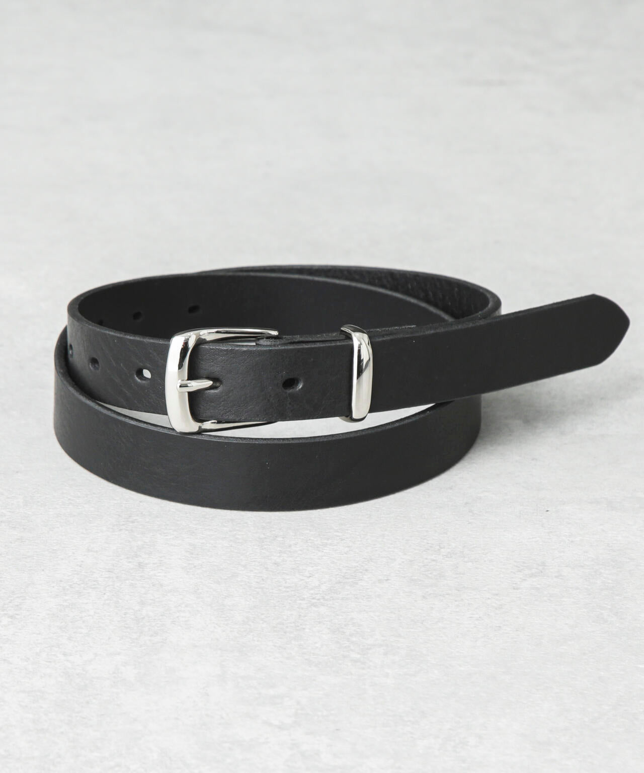 メタルのベルトループがポイントのレザーベルト。キレイめからカジュアルまでスタリングの幅を選ばず、ウエストをおしゃれに飾ってくれるアイテムです。