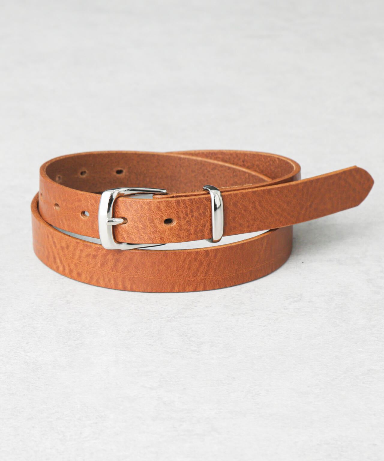 メタルのベルトループがポイントのレザーベルト