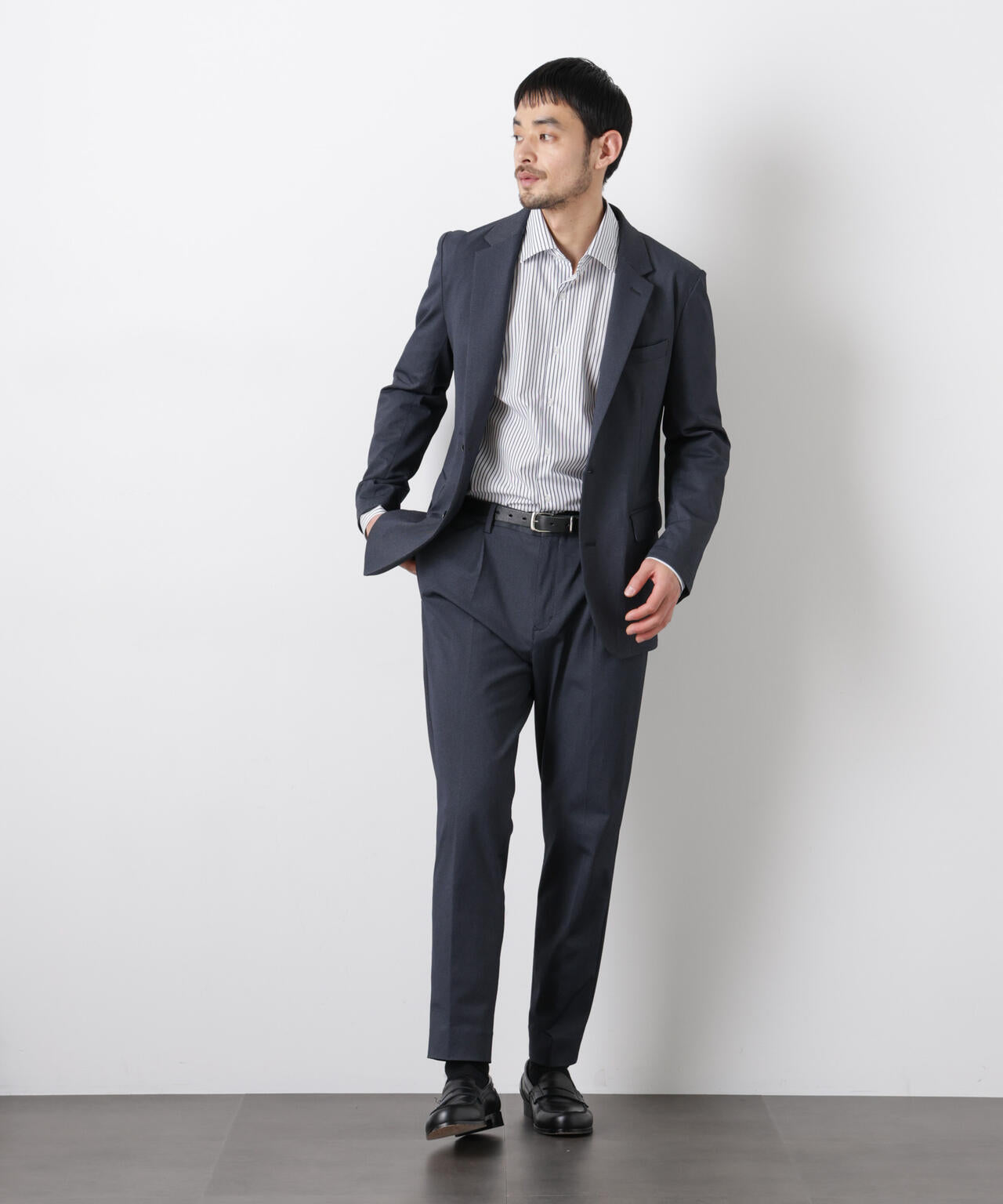 イギリス、アメリカ、イタリアなど様々な国のテーラードスタイルを取り入れ進化してきた日本のスーツの現在進行形。クラシックの基本(ゴージ位置、ラペル幅、ポケット位置、ボタン位置、フロントカットバランスなど)は崩さず、余計な装飾を省きクリーンで現代的、10年着続けられるデザイン、オーセンティックなフィッティングに落とし込んでいる。ゴージ位置、角度、ラペルラインからフロントのカッティングラインがスマートな印象を生み出している。素材はポリエステルをベースとしたNEW STANDARDとなりうる素材。天然素材でなければならないという伝統的な思考ではなく、伝統を踏まえた見え方かつ、未来思考の素材を使用。
