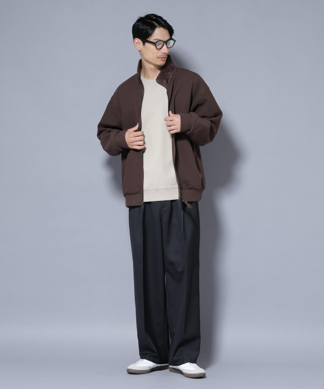 ふんわりと紡績されたウーリーポリエステルヤーンを使用。ポリエステル100%でありながらもウールのような上質な見た目でふくらみを持ちながら、シワになりにくく洗濯機でも洗うことができるイージケアな生地です。ストレッチ性も持ち、抗ピリング性にも優れており、温かみのあるウールライクな質感を表現した好感度・多機能素材。