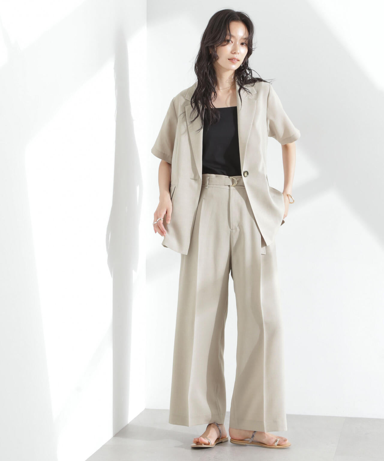 ・6695127303 メランジドライ ベルトツキタックワイドパンツ(セットアップ可)