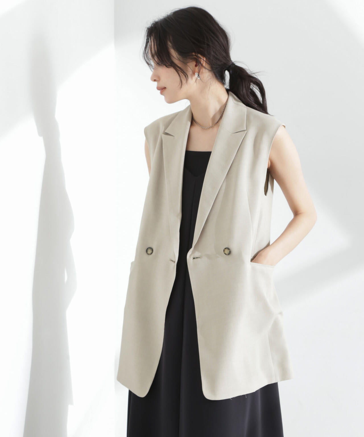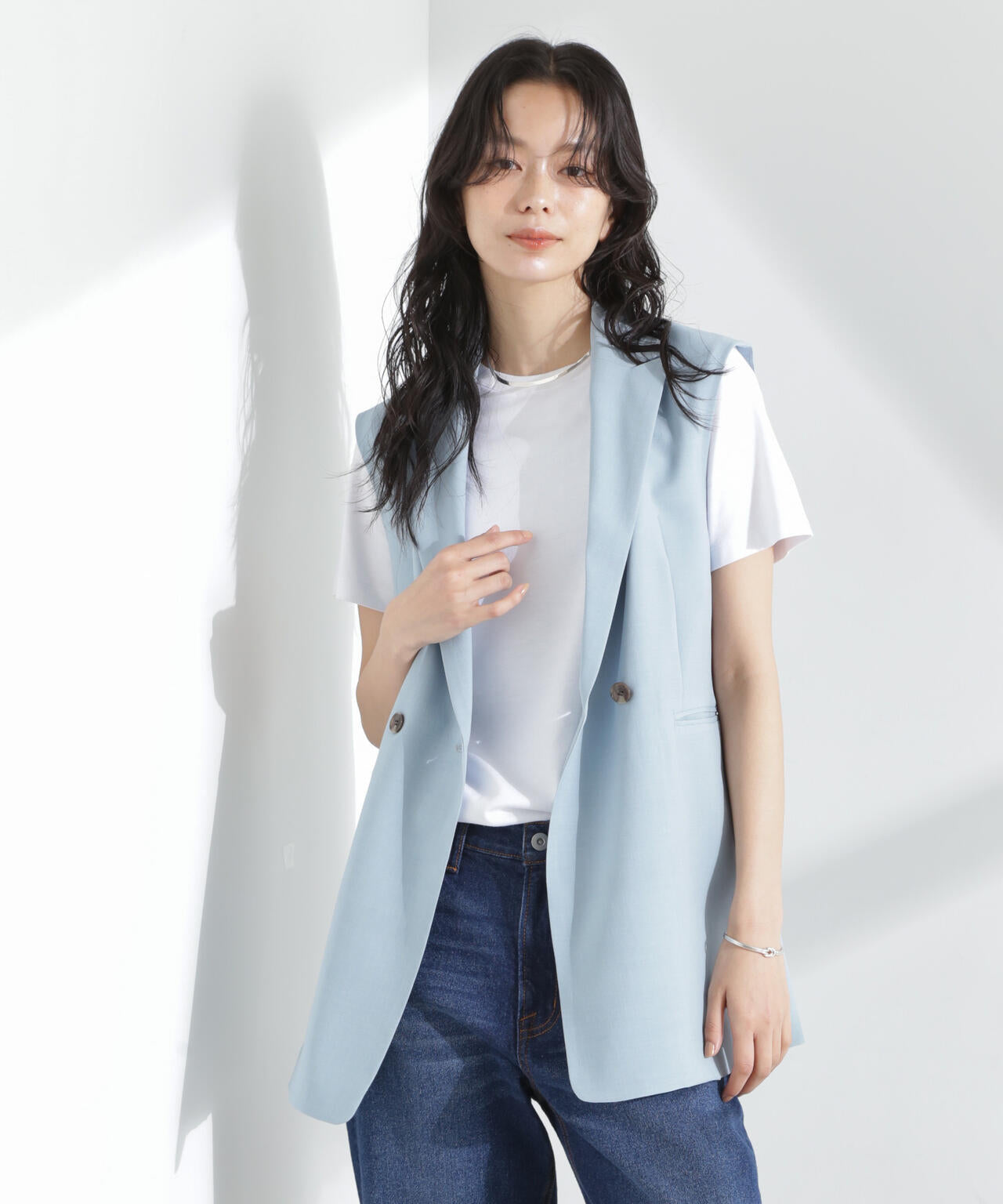 ナノ・ユニバースで毎年ご好評のメランジドライシリーズのジレ。ブラウスやTシャツと合わせやすいようにアームホールも程よいサイズ感に仕上げているので、単調になりがちな夏のスタイルにプラスワンアイテムとして重宝しそう!