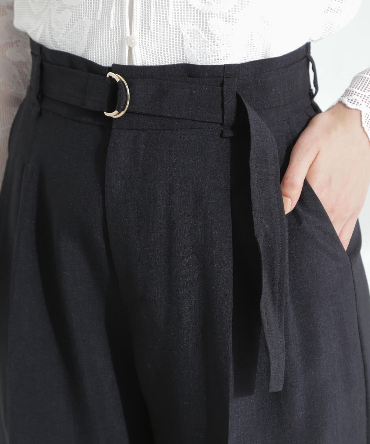 ・トップスインした際にポイントになる太めの共地ベルト付き