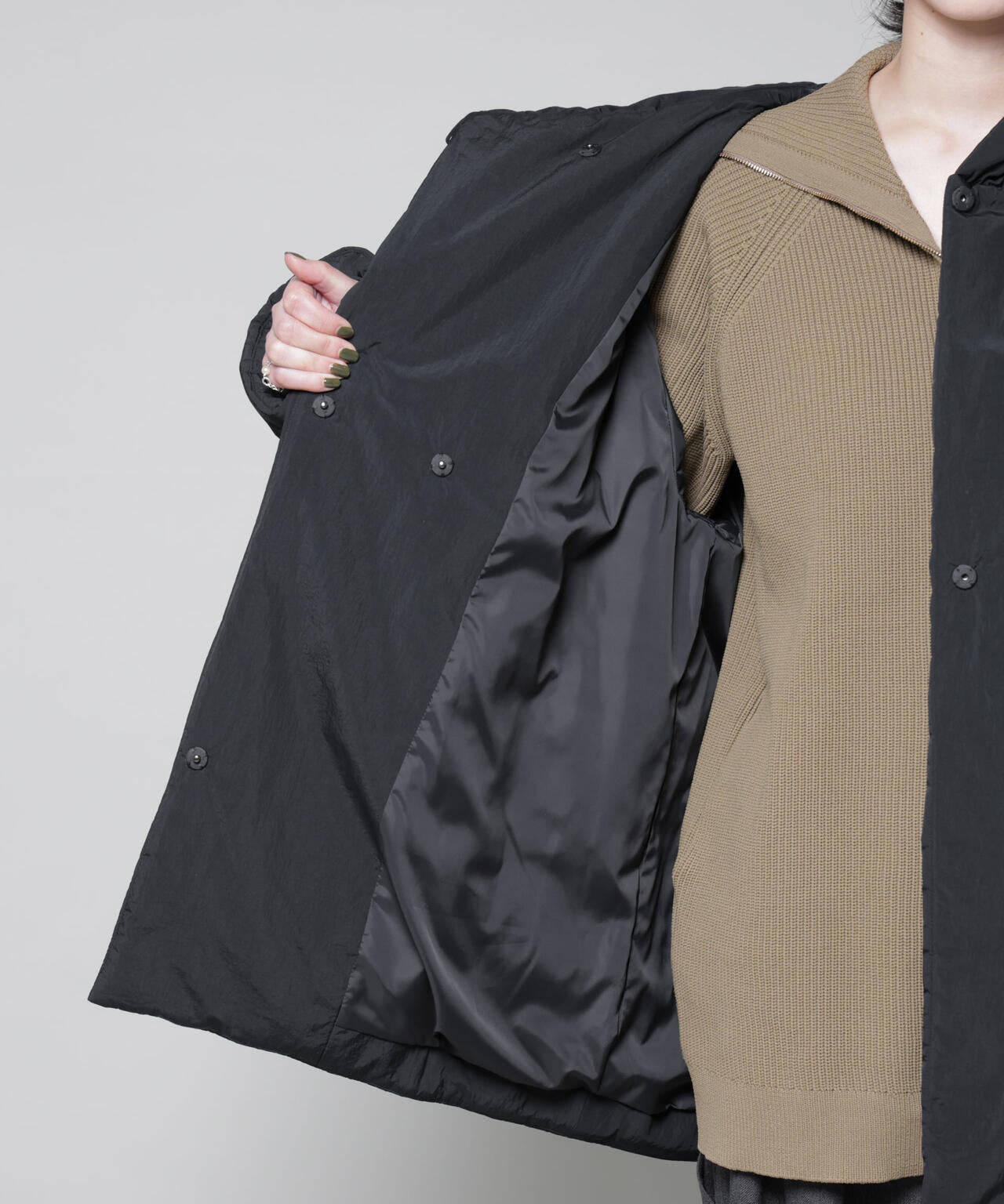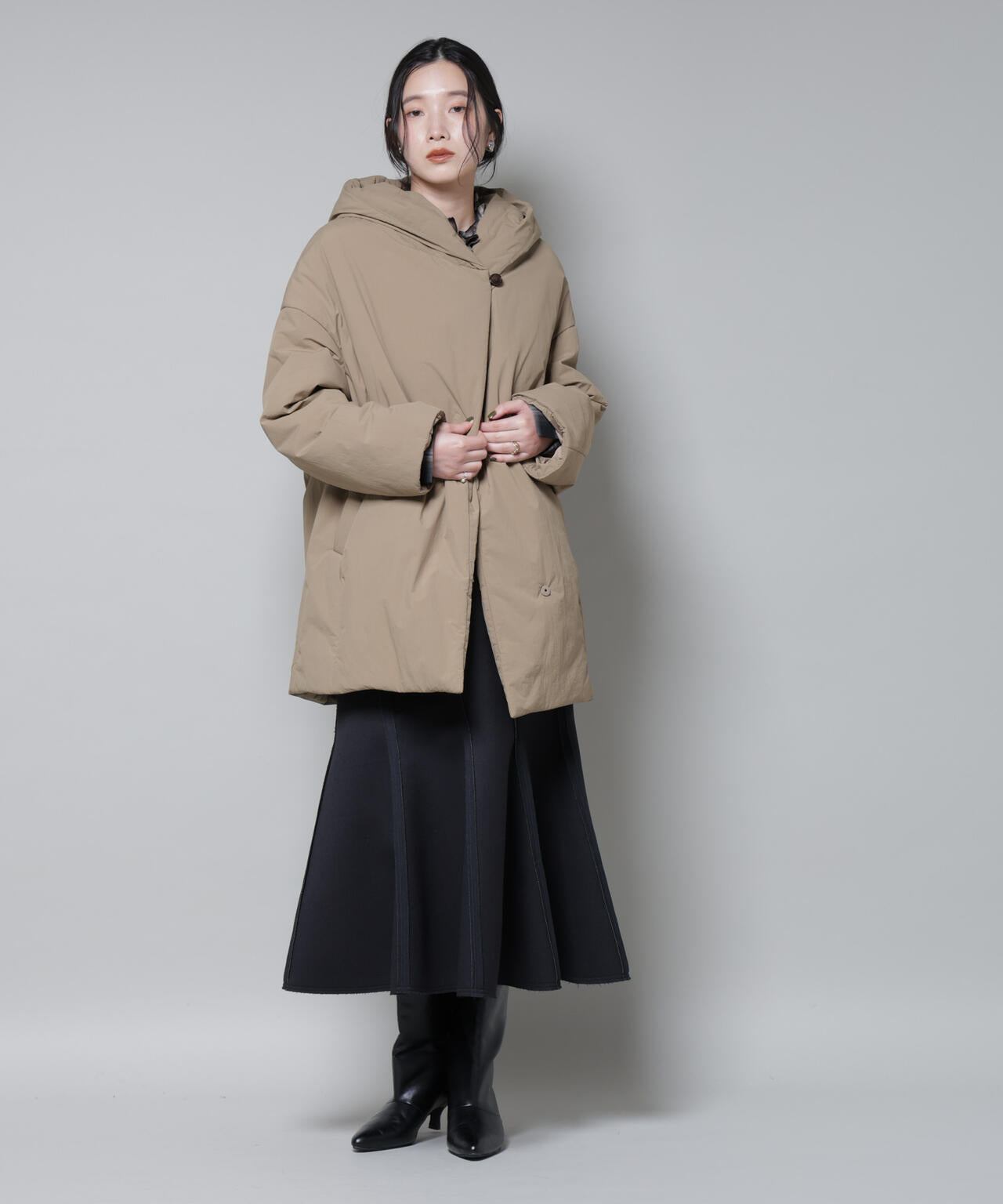 軽くて暖かい機能中綿「ETHERMALOFT(R)AEROGEL」を使用したアウターシリーズ。防寒性とファッション性を兼ね備えた着心地で寒い冬でも快適に過ごせるアイテム。コロンとした丸みのあるエッグフォルムが女性らしい雰囲気のある一着です。
