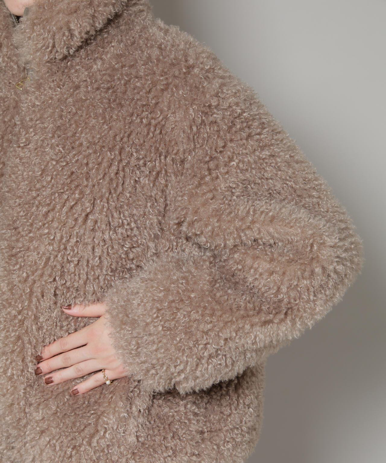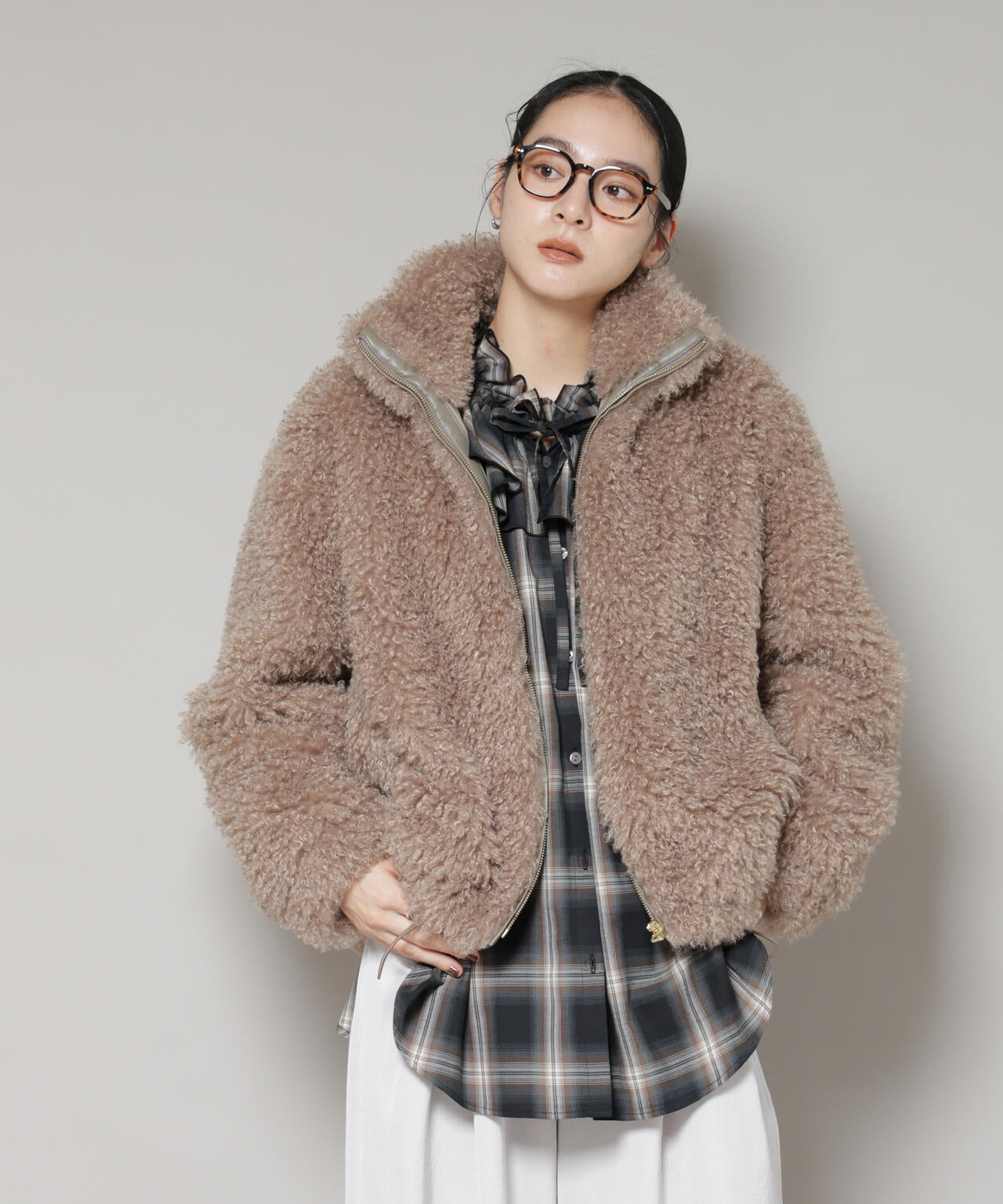 くるんとしたカーリーな毛足がポイントのフェイクファーブルゾン