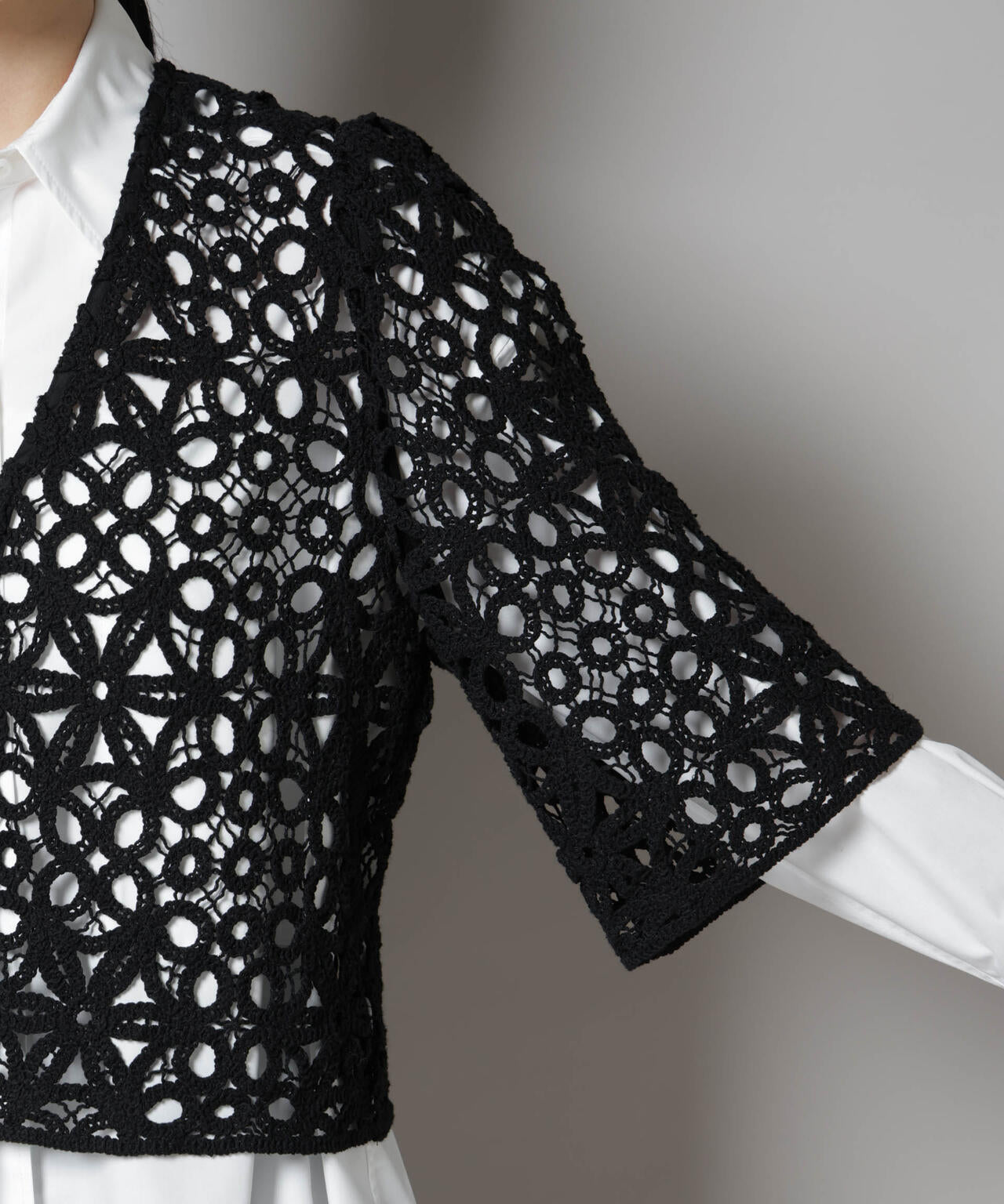 ・大人の女性が着れる甘すぎない柄で仕立てたコードレースジャケット