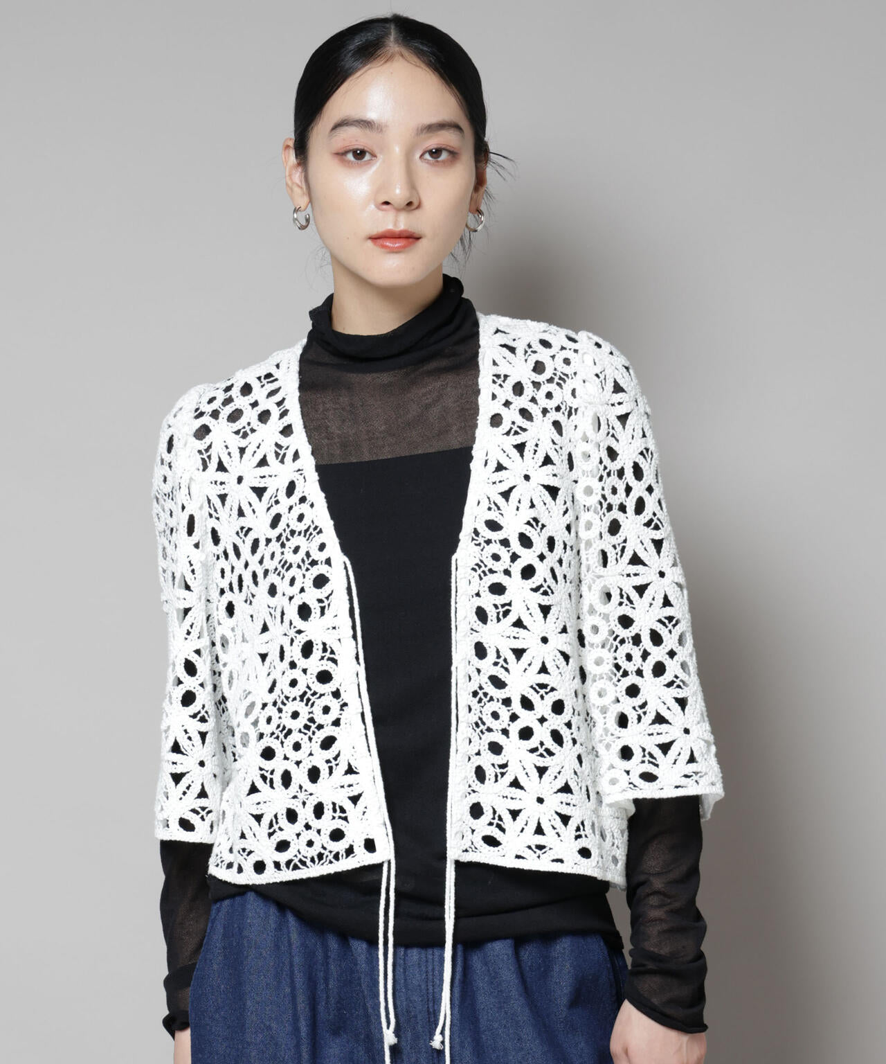 今季らしいBOHOムードを感じさせるコードレースジャケット。シャツにレイヤードしたり、ジャケットの上からボレロのように羽織ったり、そのままカーディガン使いしたりと、着こなしのバリエーションが広がる一着です。