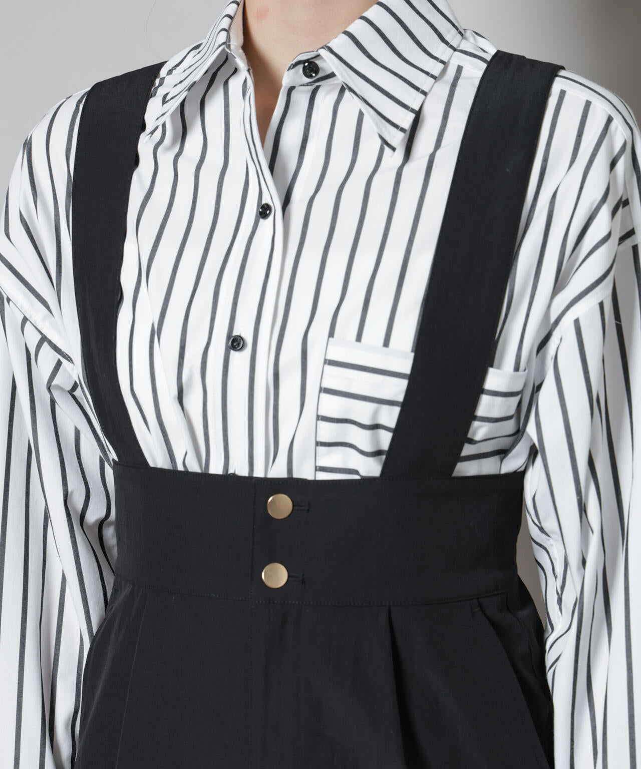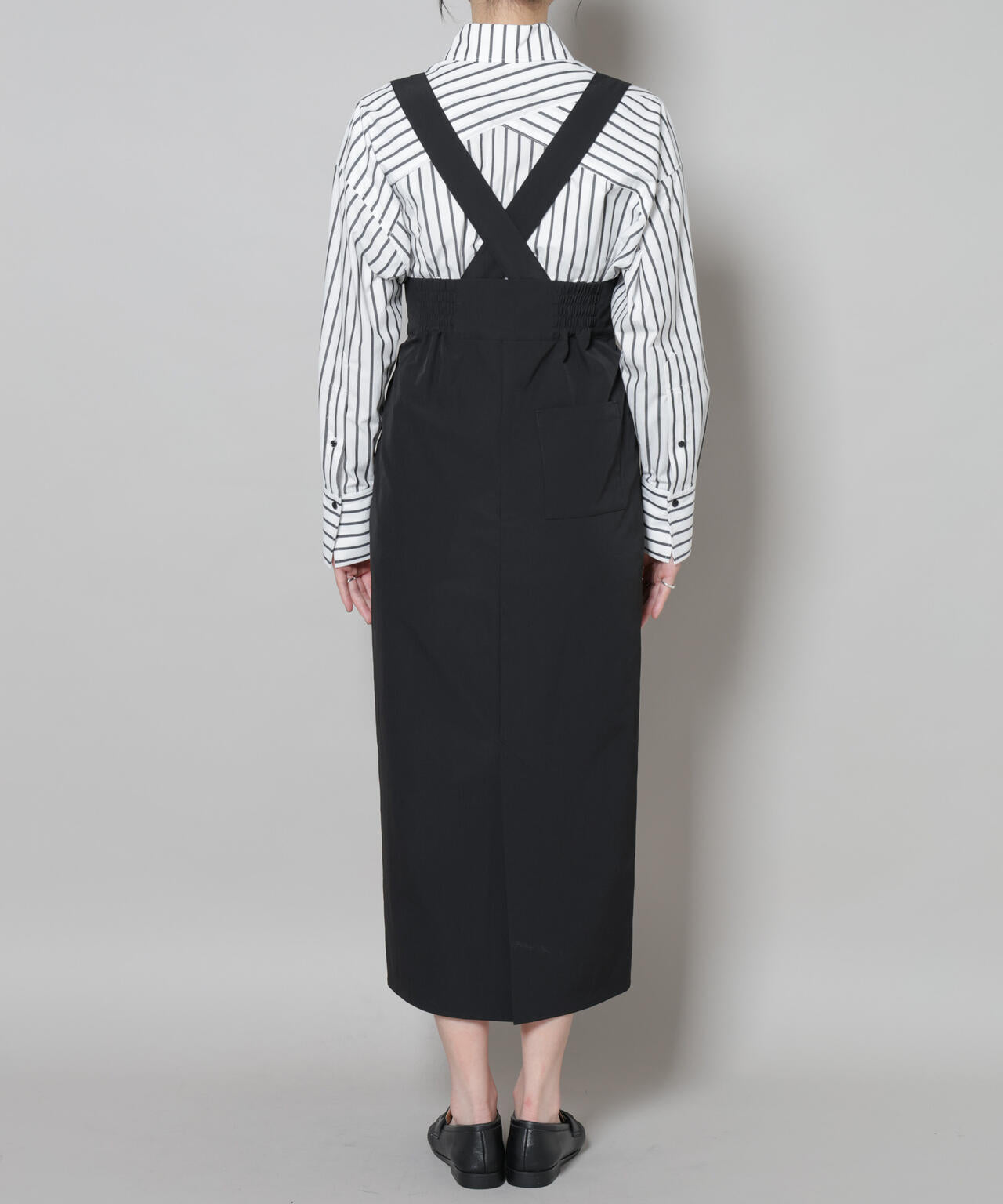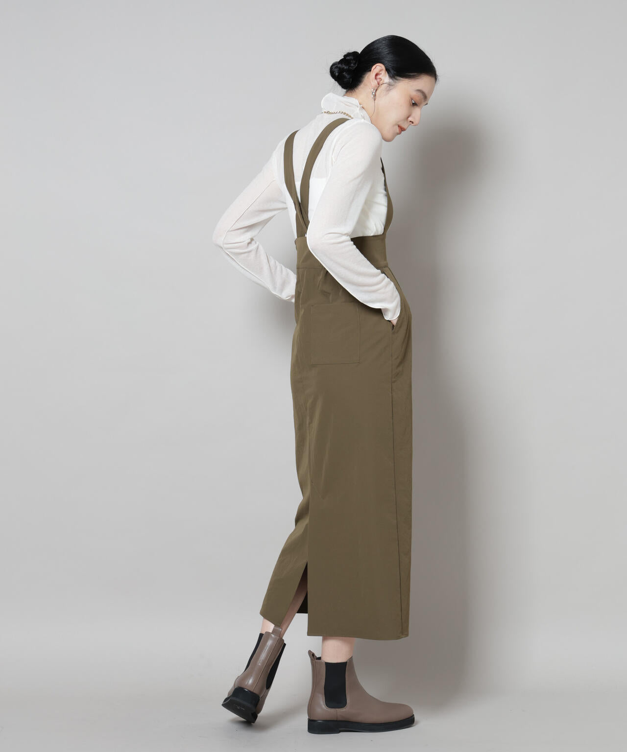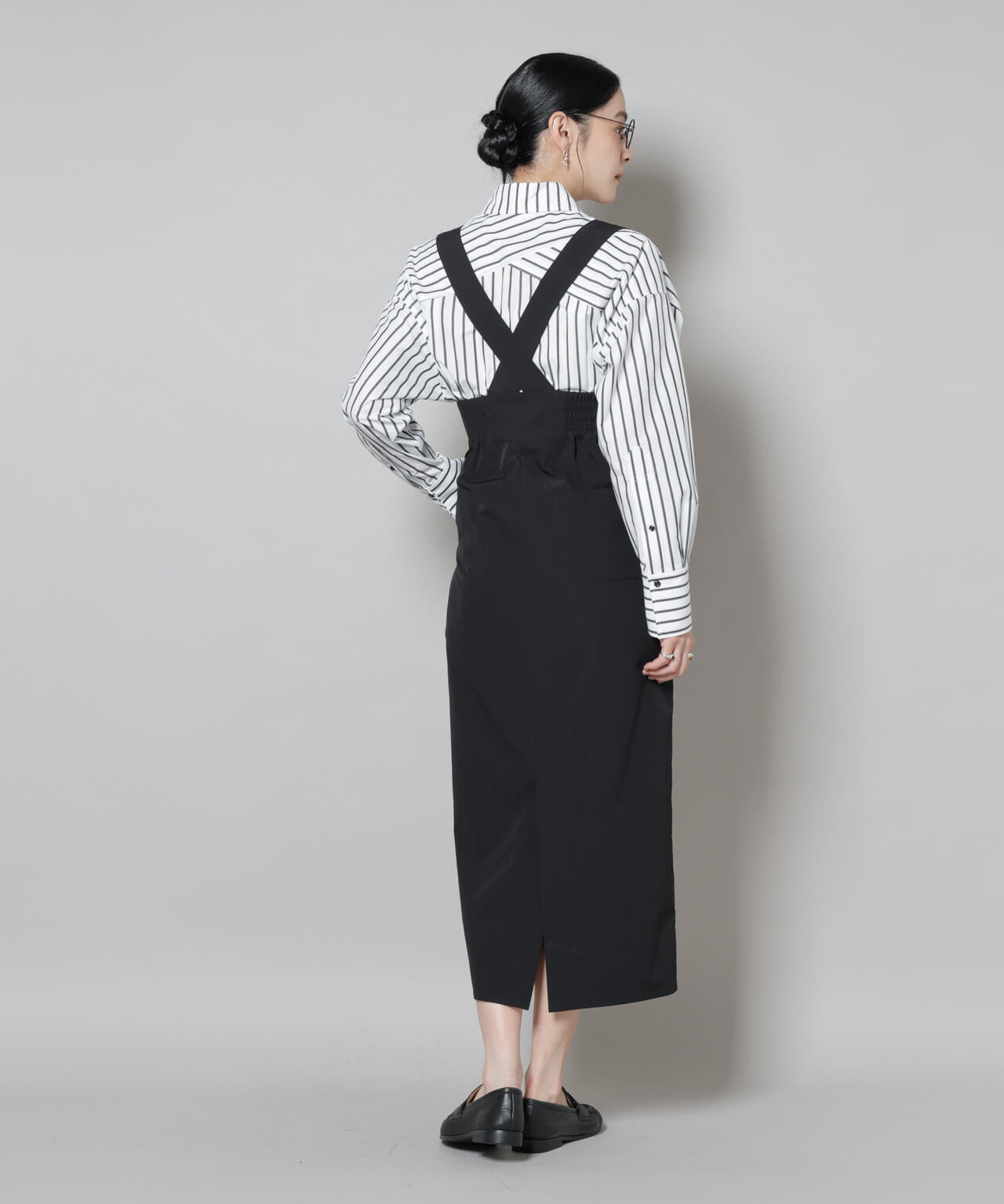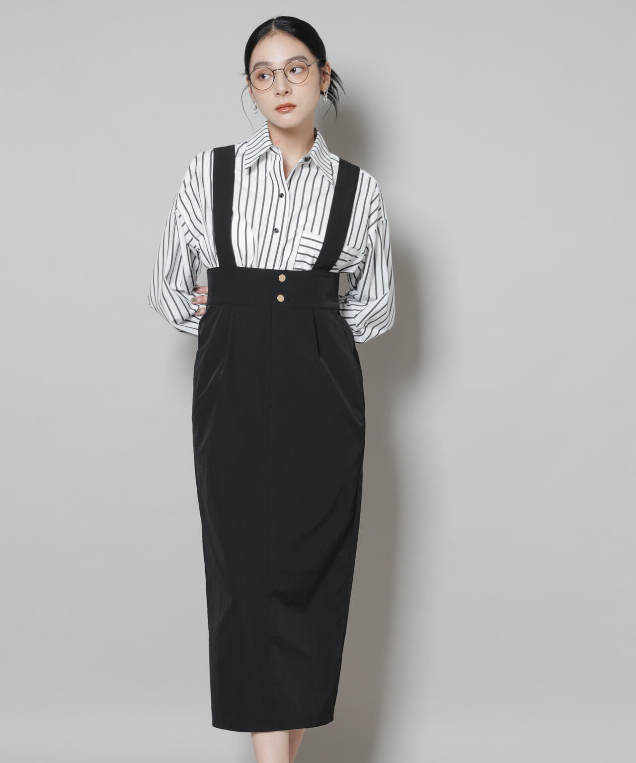 太めのサスペンダーが目を引く、すっきりとしたIラインのジャンパースカート