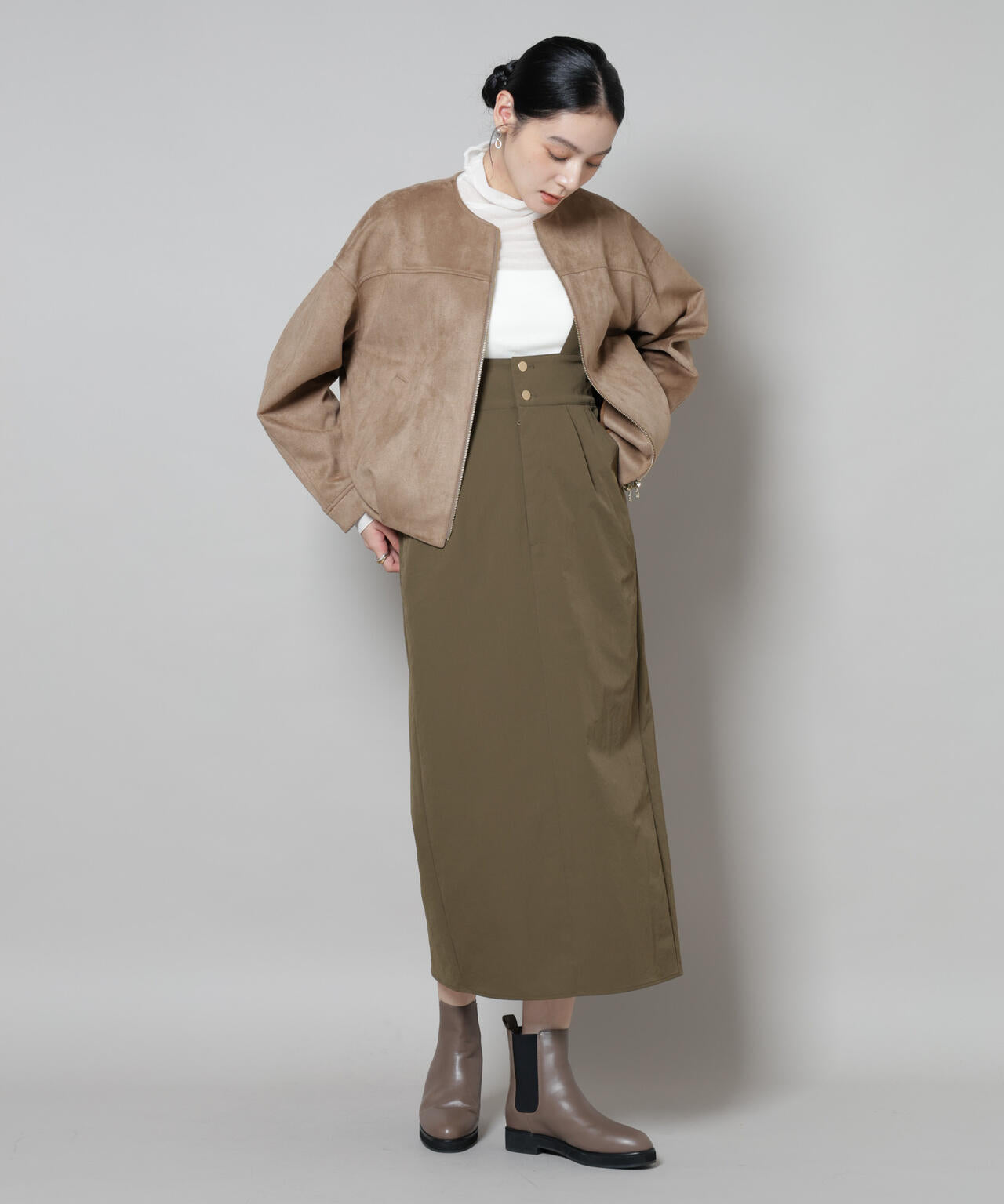 タック入りのデザインでボトムライクに見えつつも、スカートならではの品のある一枚