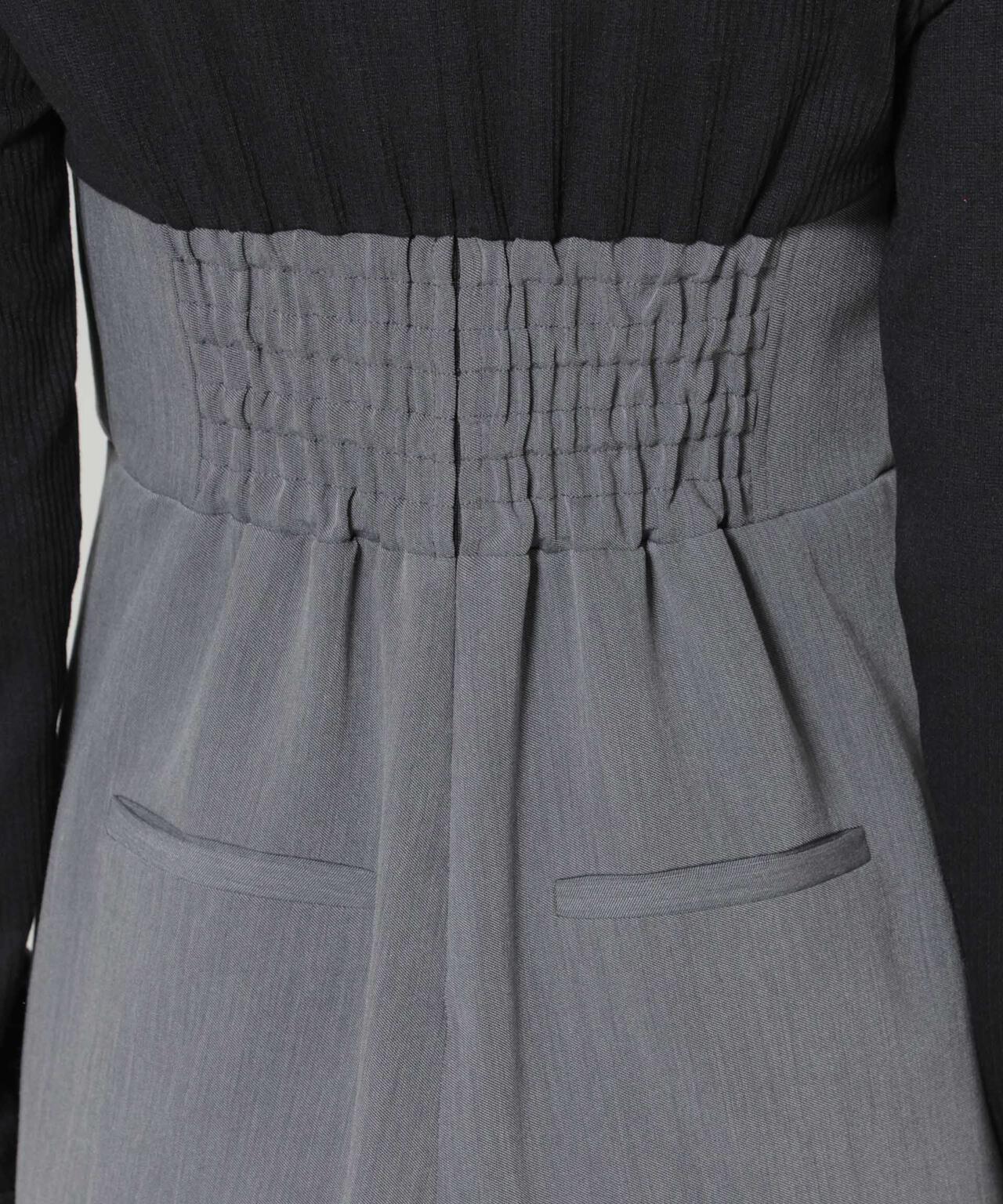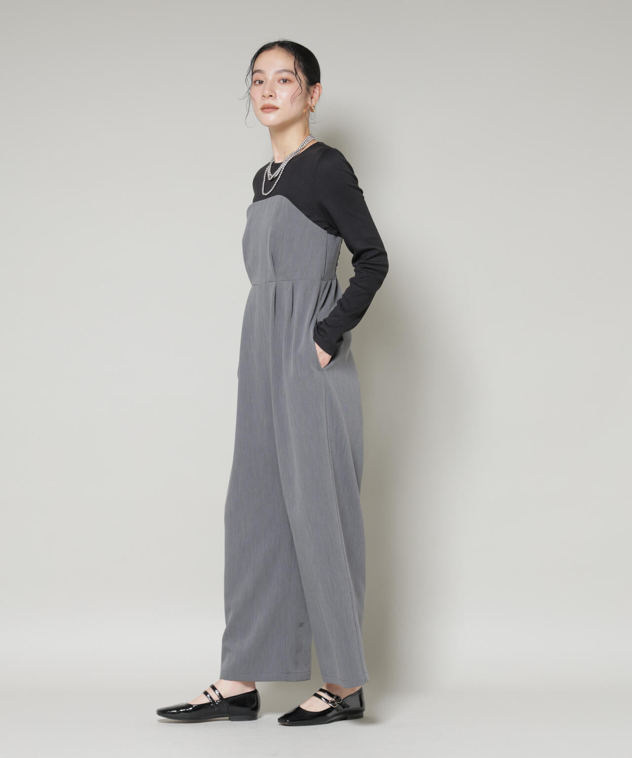 カジュアルテイストのリブカットソーと、キレイ目なダブルクロスをドッキングさせたオールインワン。このまま一枚で着るだけでスタイリングが完成し、ジャケットを羽織れば軽いオケージョンにも使え、オンオフ兼用できるアイテムです。