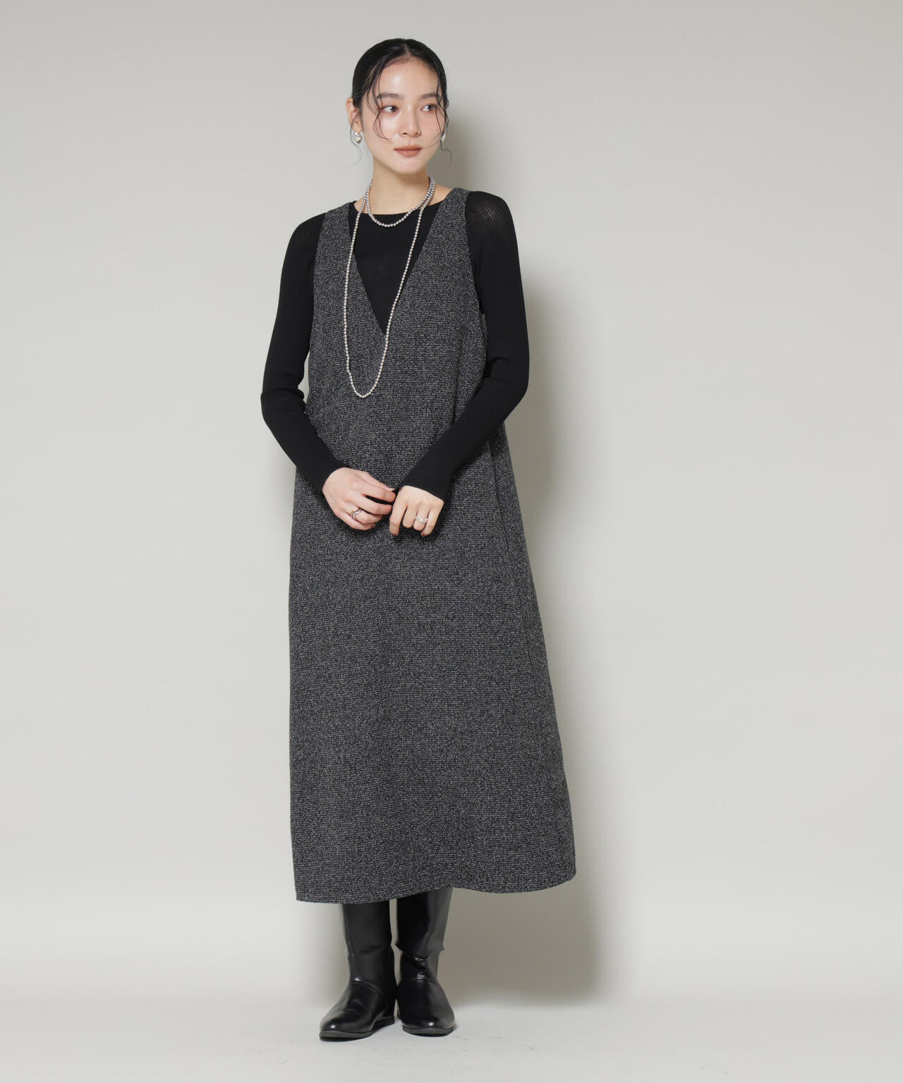 上品なツイードワンピースと、センシュアルなシアーリブニットがセットになったお得なアイテム。それぞれ単品使いもしやすく幅広いスタイルを楽しめるので、ワードローブのスタメンになってくれそう!