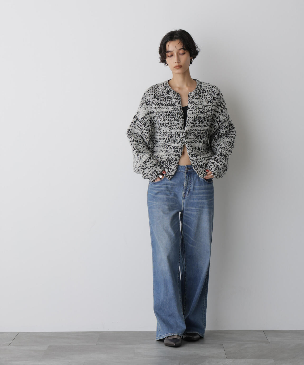 今季ローンチした新レーベル「Stevelour(スティーブロア)」の2WAYスナップニット。スナップボタンでモードさがプラスされ、シャツに羽織ったスタイルはもちろん、開きを後ろにして第一ボタンと裾ボタンのみを閉めたインナーバックスタイルの抜け感を楽しむ着こなしもおすすめです。