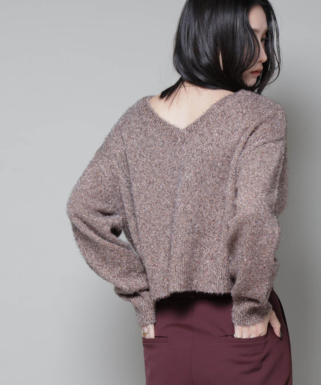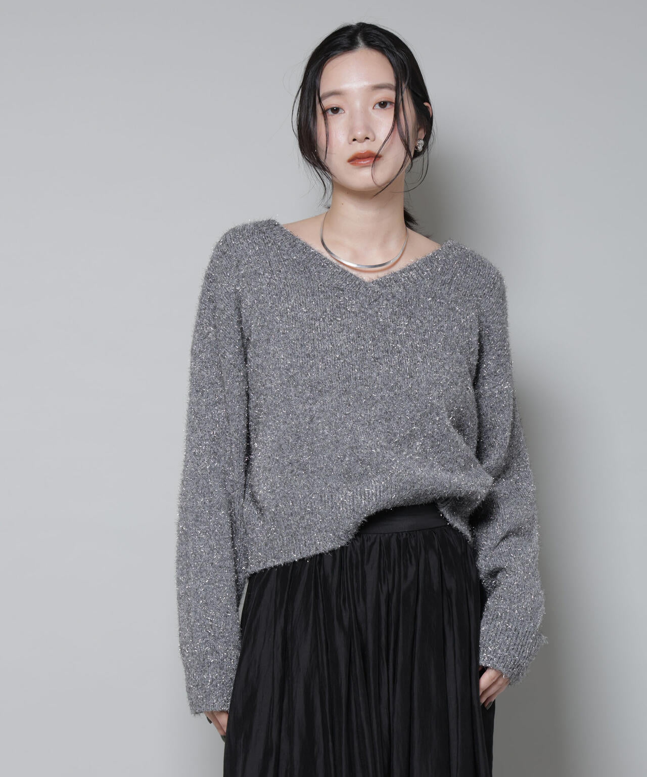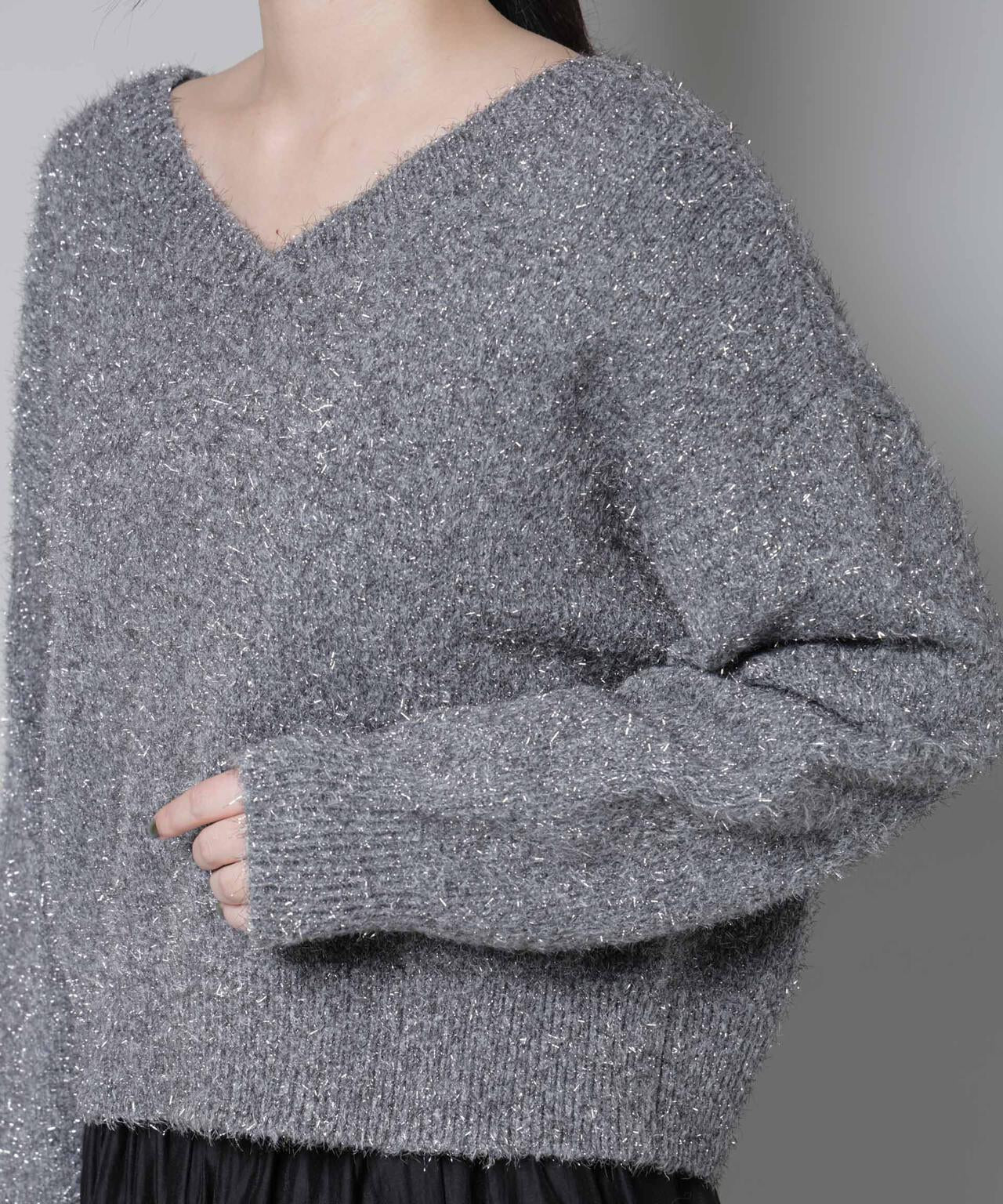 ふわっと軽やかな風合いと、繊細なラメのきらめきが魅力のニットプルオーバー