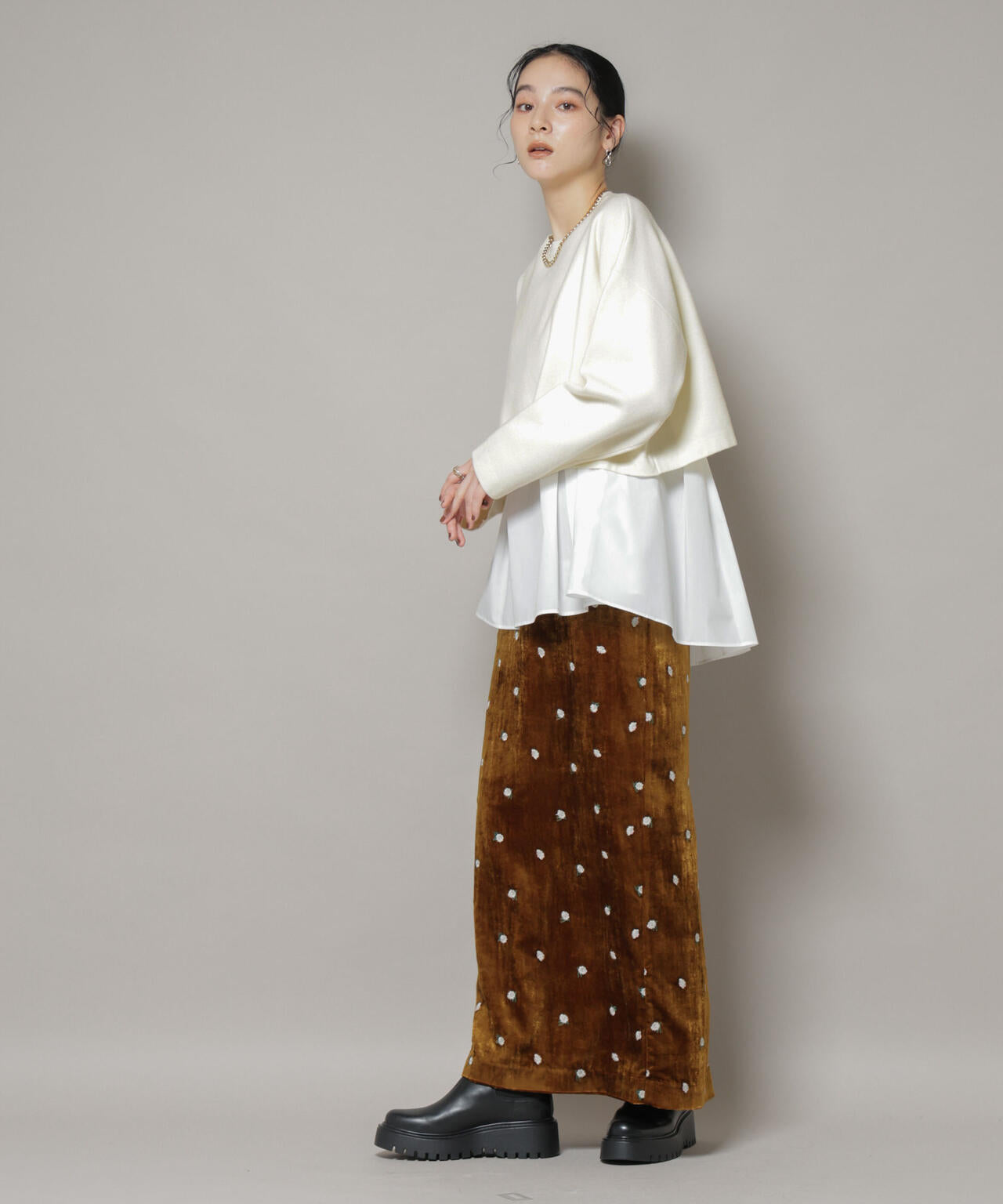 ・アイボリー×ホワイトブラウス