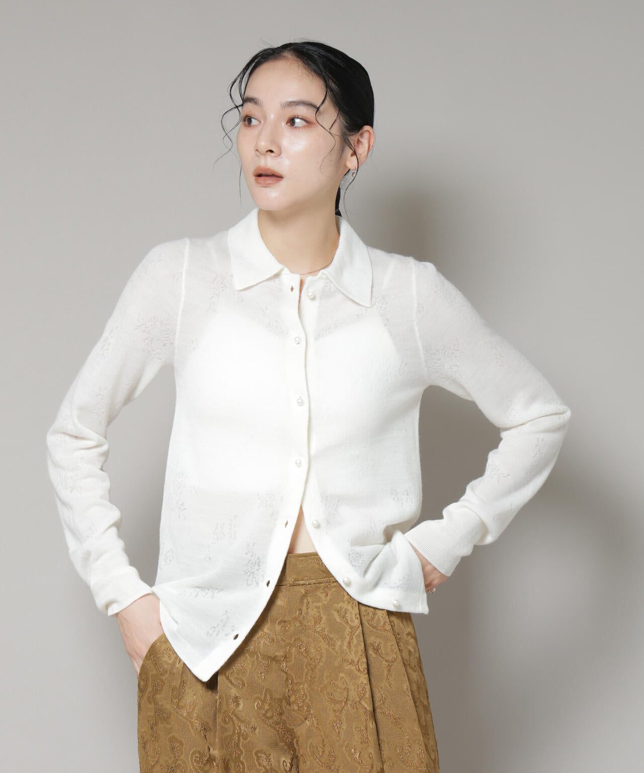・ブーケ柄ジャカードが主張しすぎず上品なアクセント