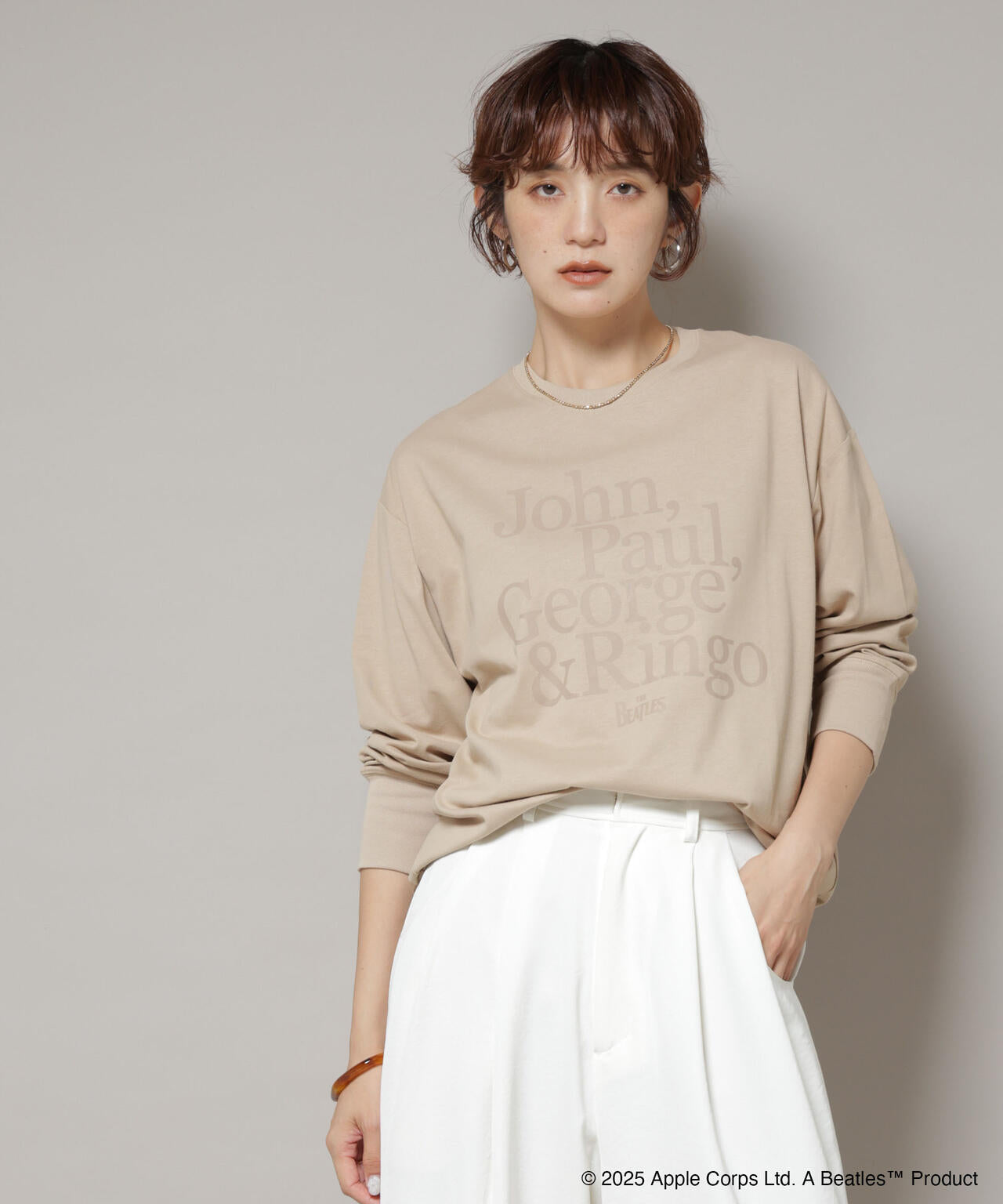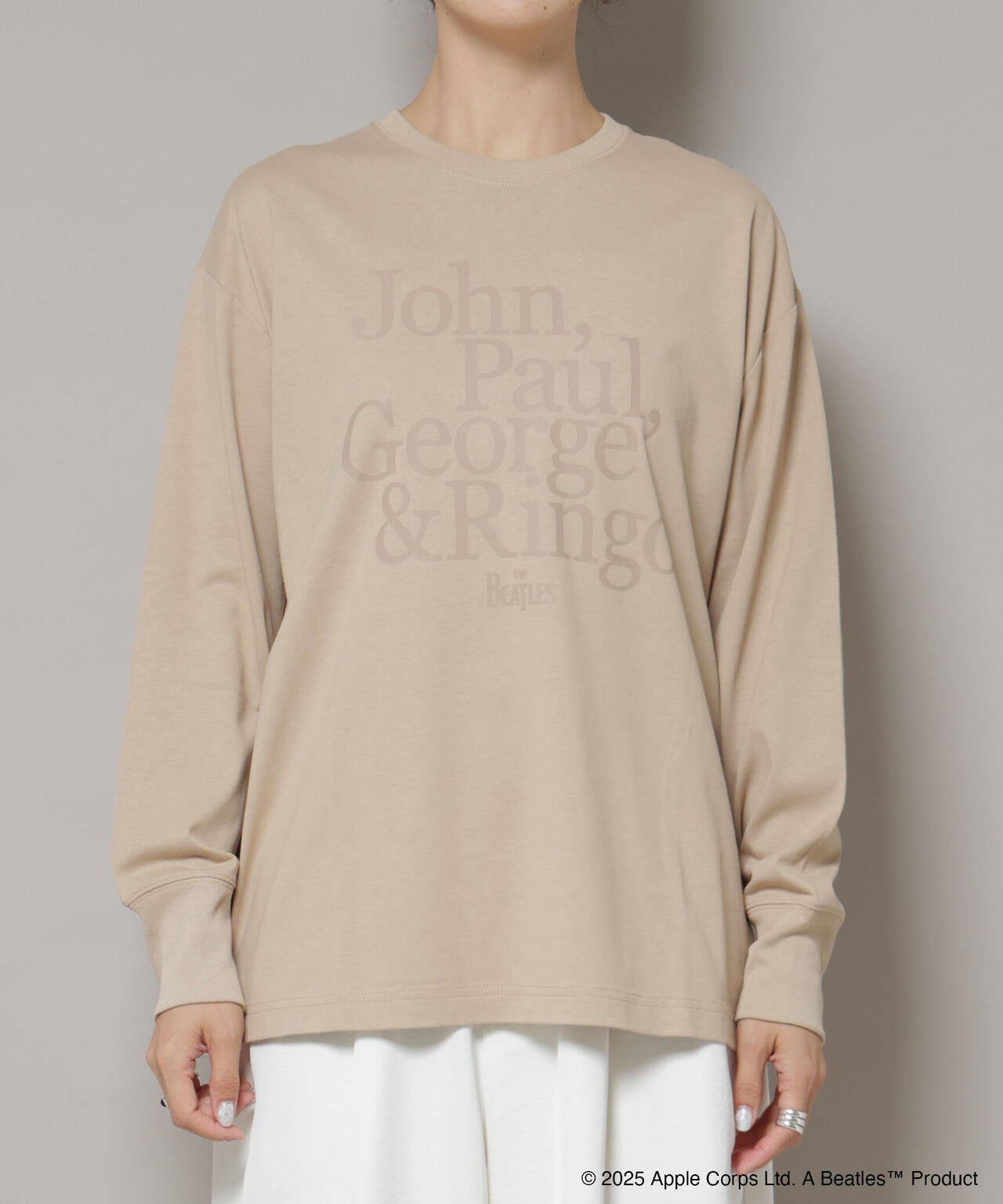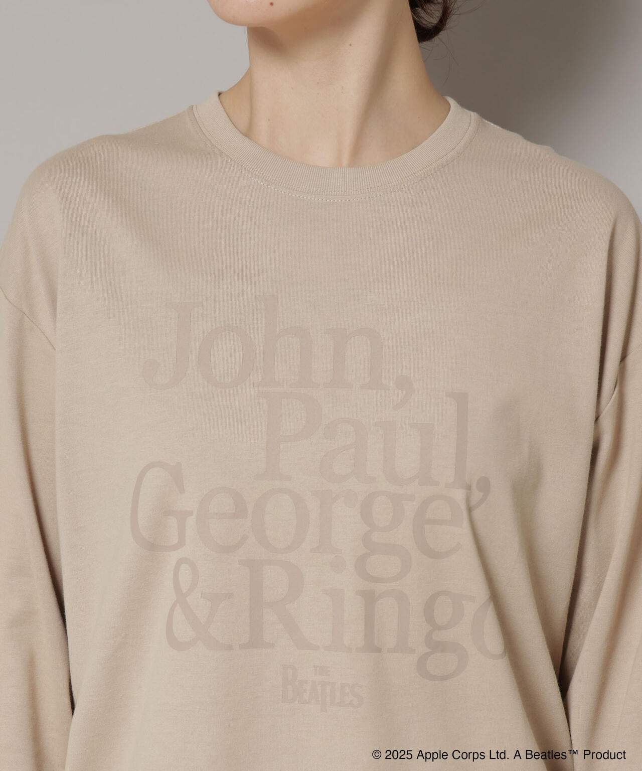 BEATLESのメンバーネームがデザインされたグラフィックを別注カラーでプリントしたロンT