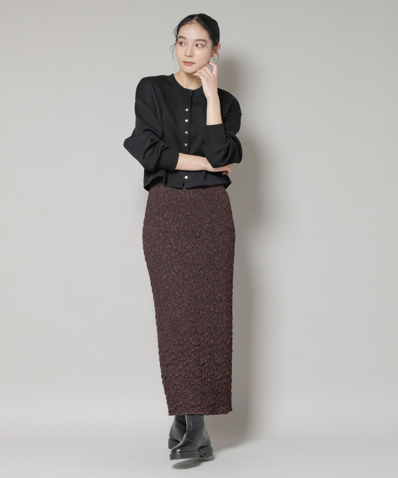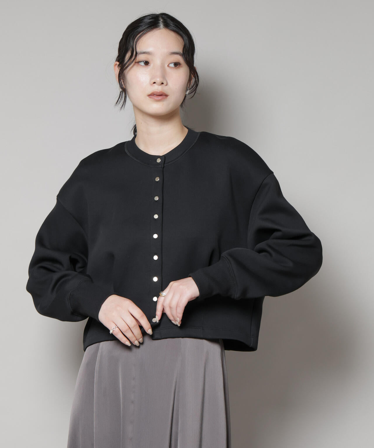立体感のあるシルエットを綺麗にキープしてくれるダンボール素材で仕立てたカーディガン