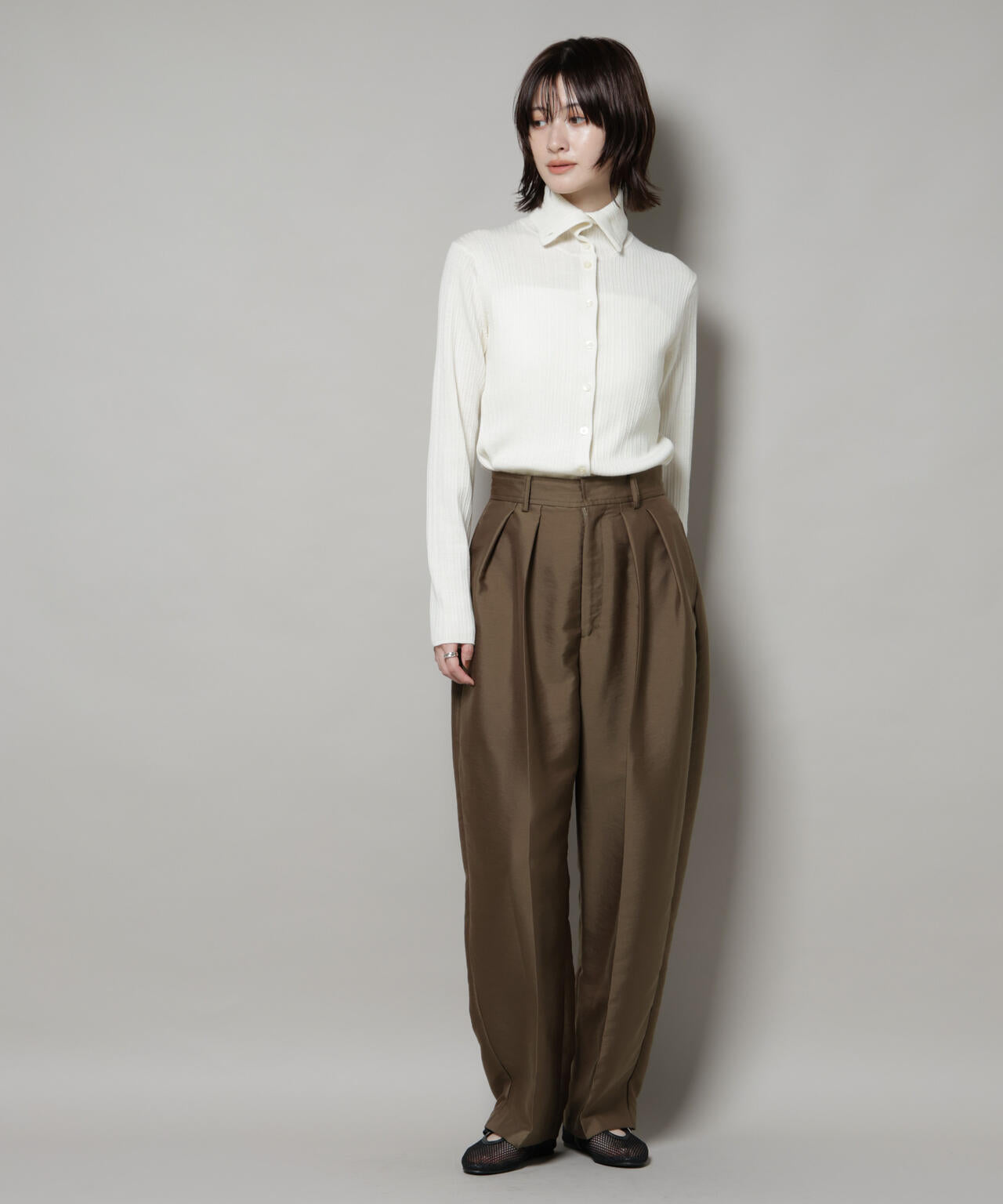 ・コクーンラインがモダンな印象を添える、大人のためのバレルパンツ