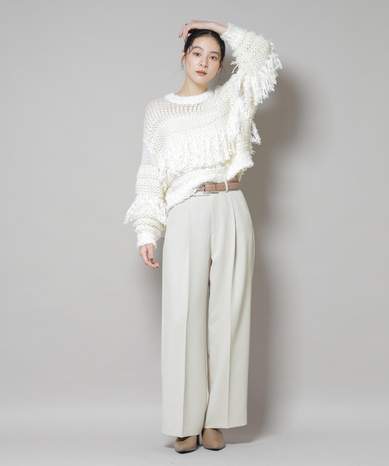 すっきりとした美脚ラインが特徴のワイドパンツ