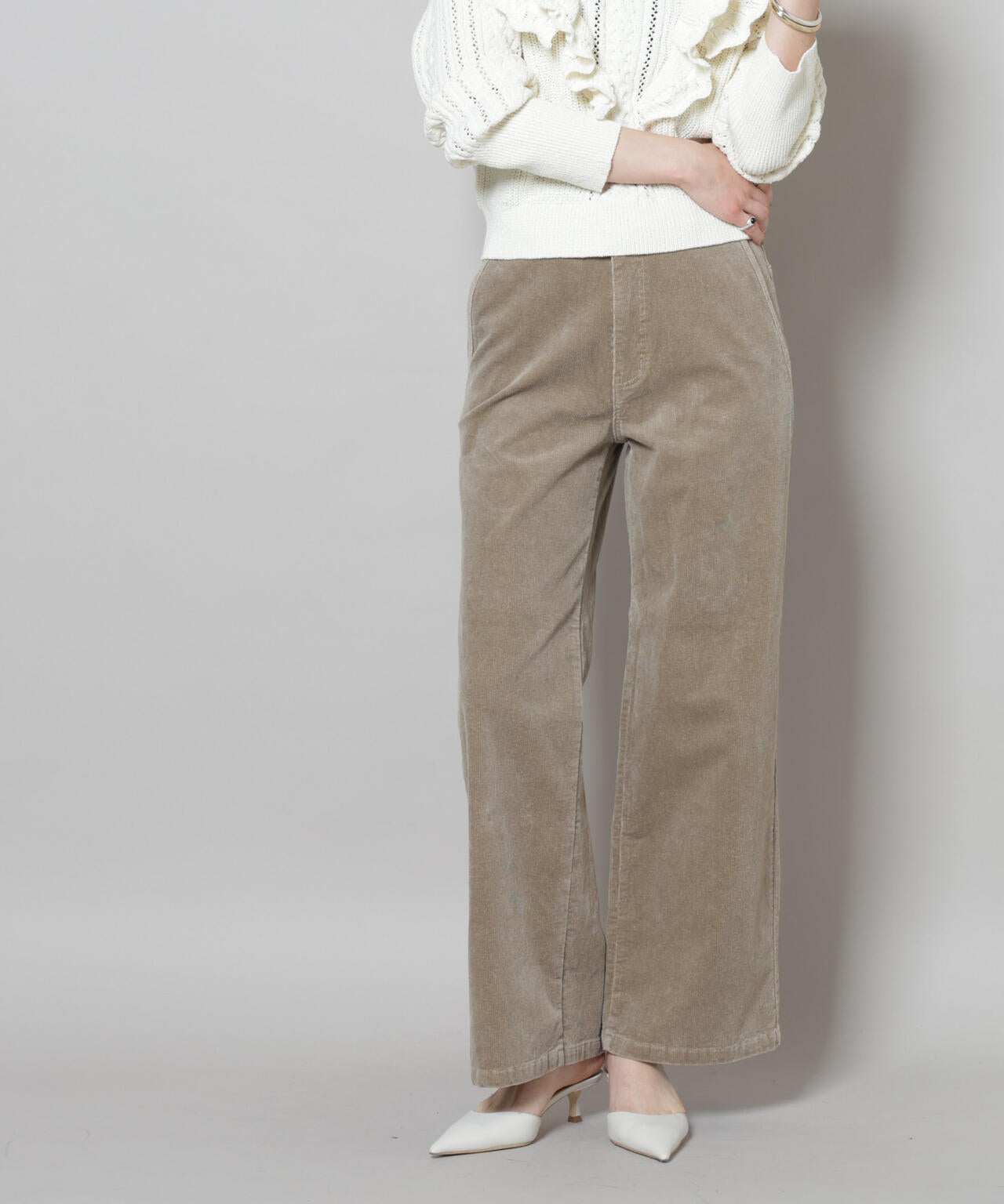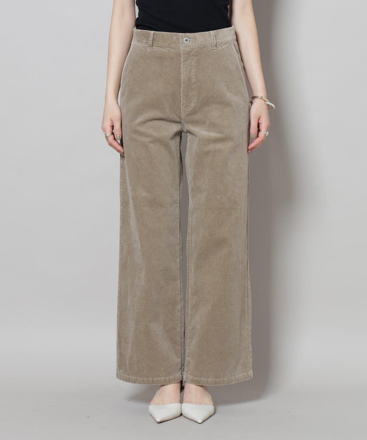 ・柔らかくストレッチの利いたコーデュロイで仕立てたワイドパンツ