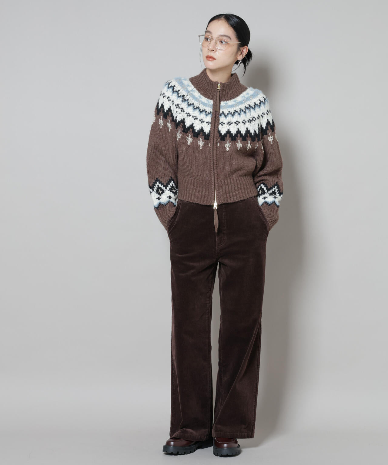 ・今期らしいBOHO感のあるデザインニットと合わせたスタイリングがおすすめ