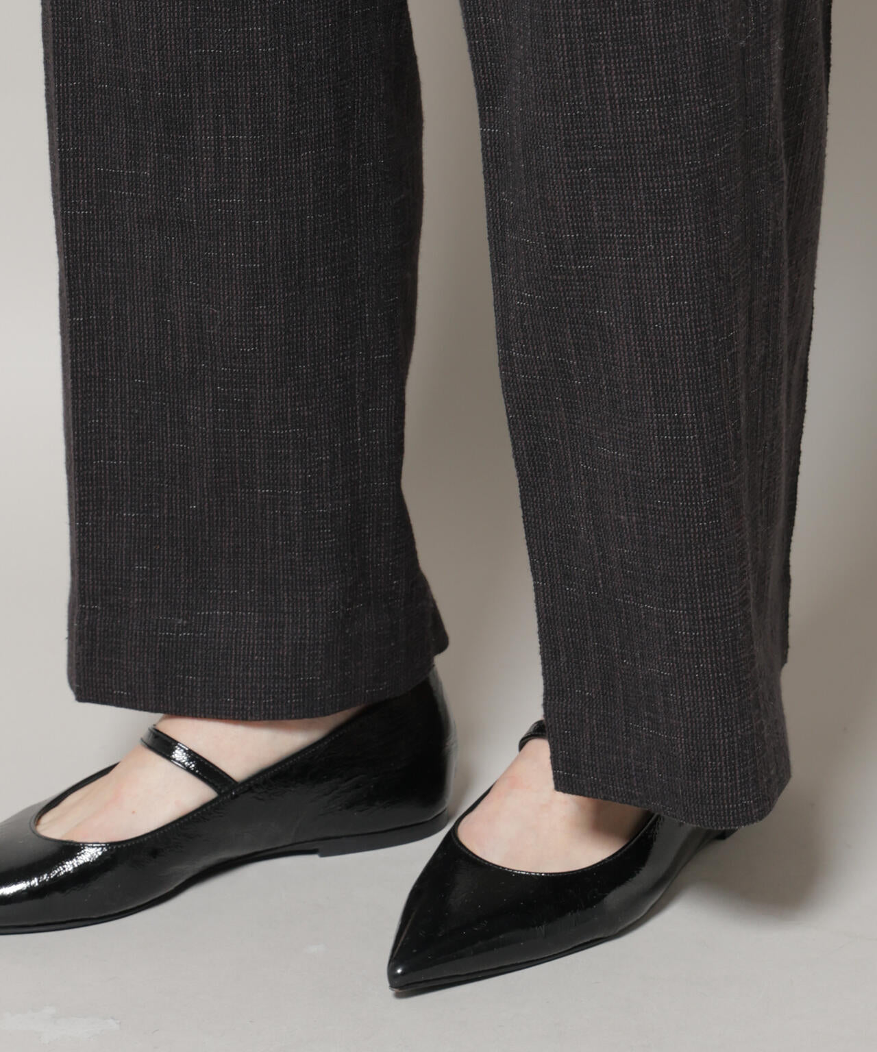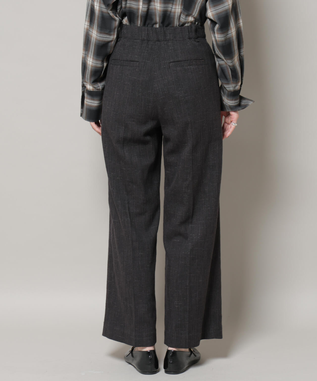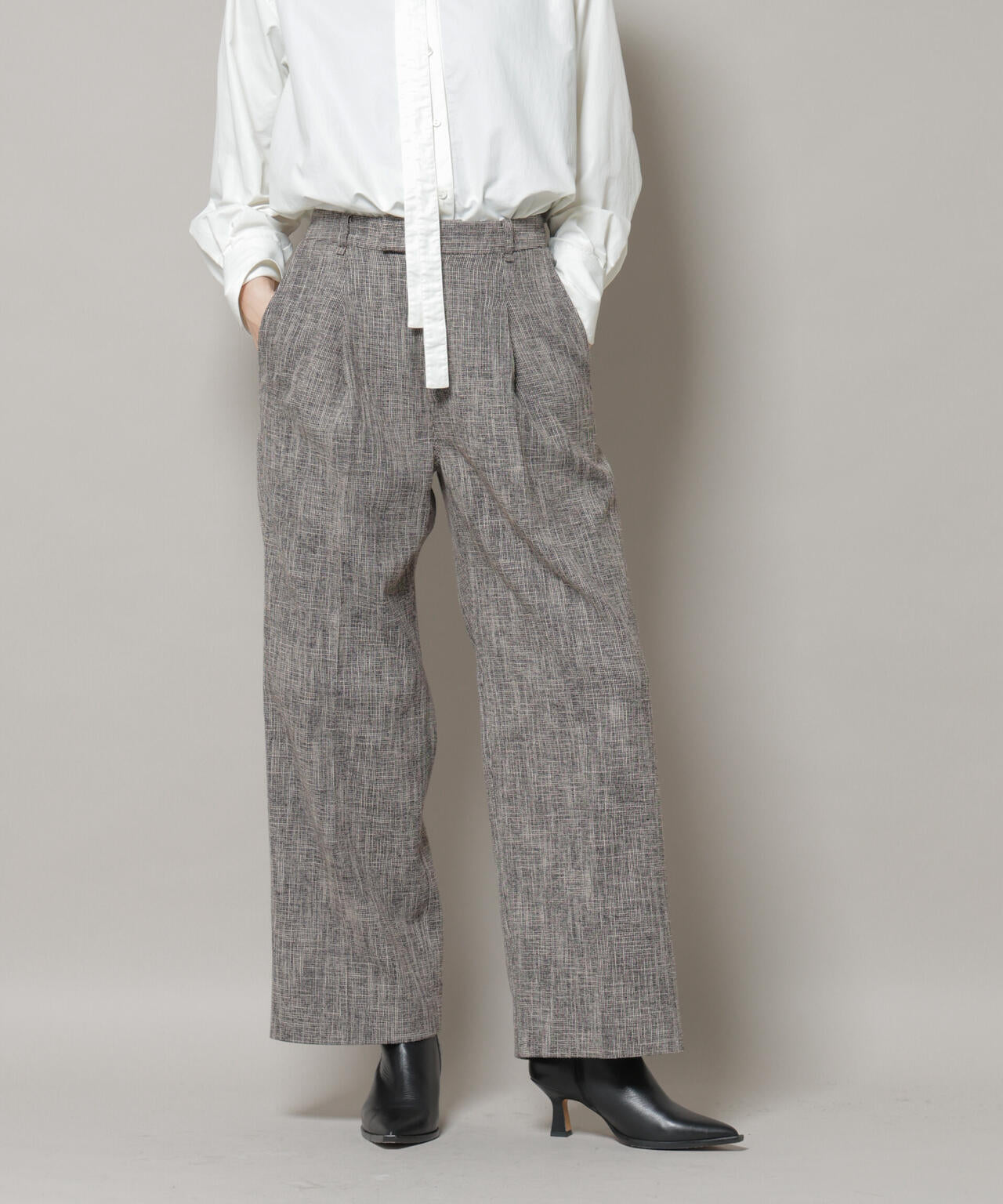 ほんのりラメの入ったクラシックなツイードパンツ。ストンとしたセミワイドシルエットにセンタープレス入りですっきり見えつつも、フロントの1タックが体型カバーを叶えてくれるデザインです。