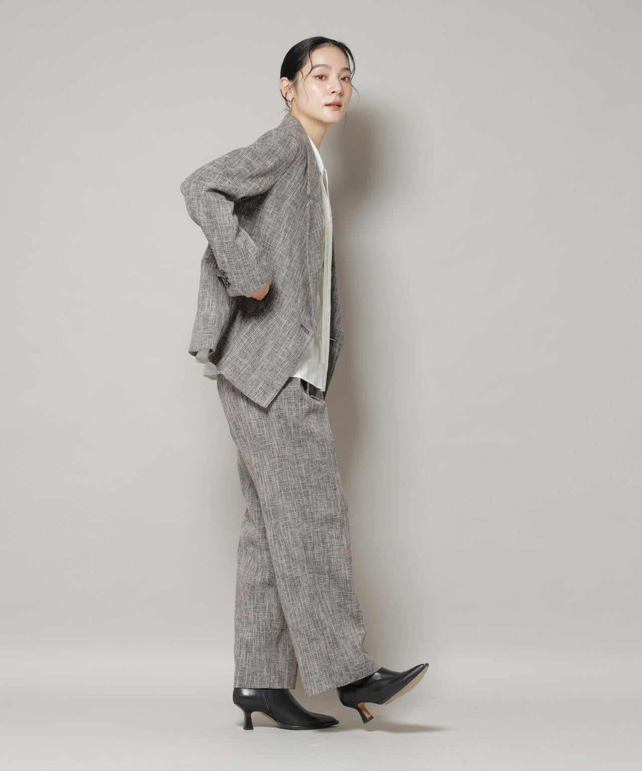 ・同素材のジャケットとセットアップでクラシカルな着こなしも素敵