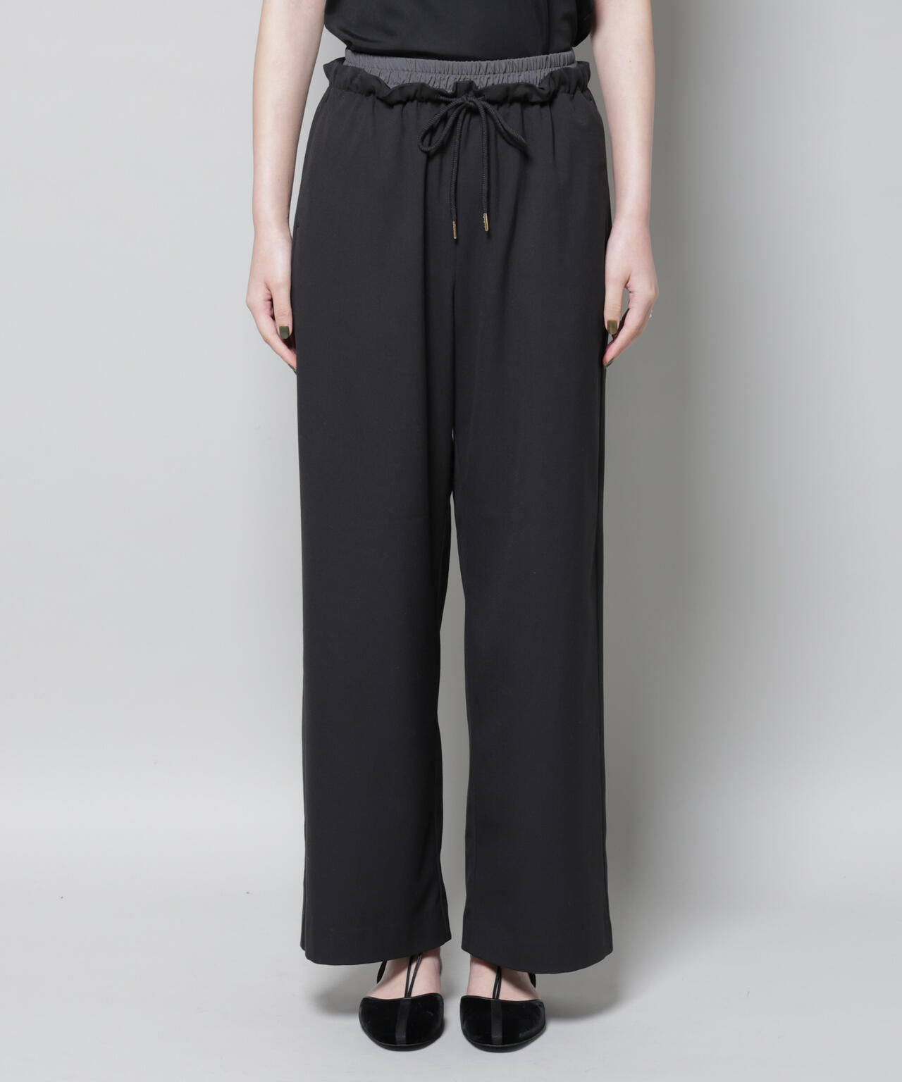 ・レイヤードライクな配色ダブルウエストデザインが特徴のロングパンツ