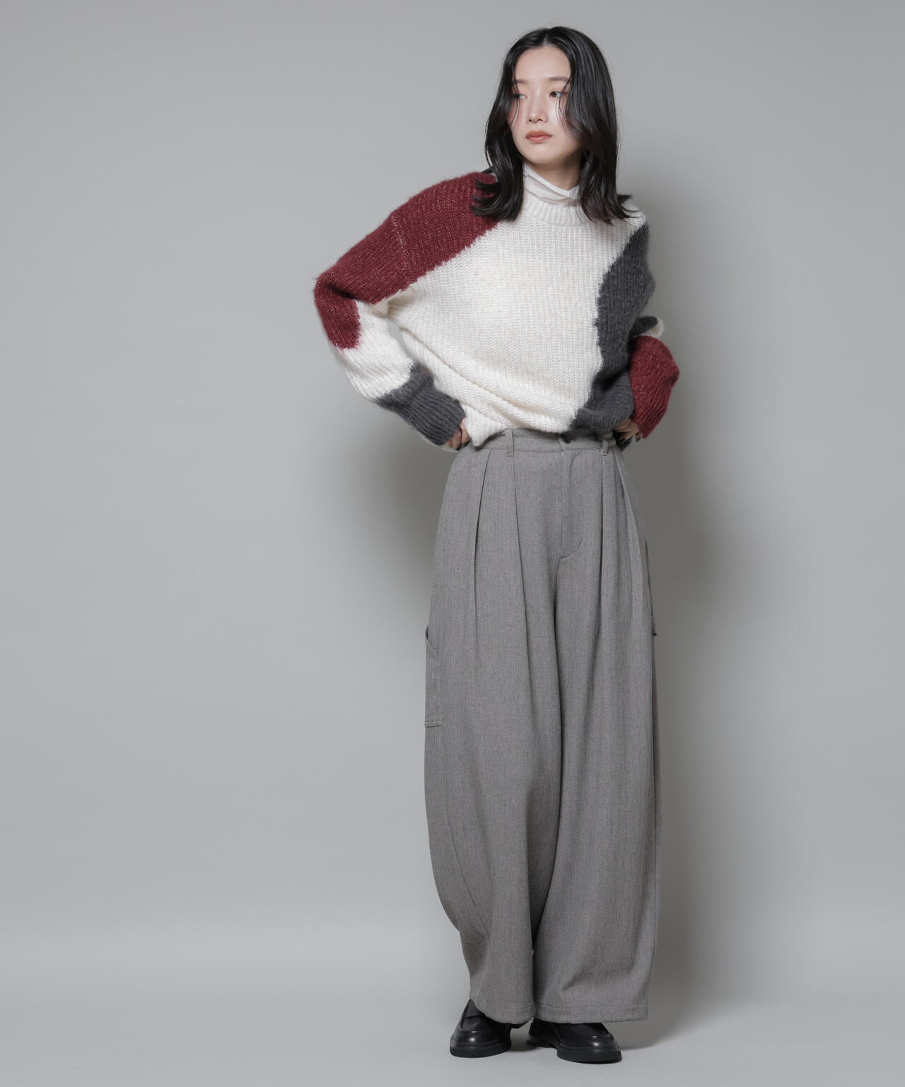 ・裾を絞らずワイドパンツにローファーやパンプスを合わせたきれいめな通勤スタイル〇