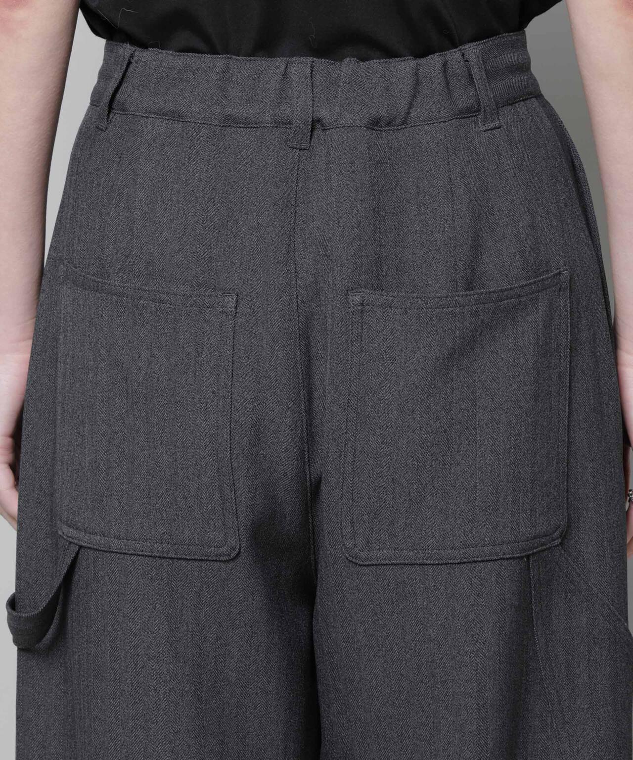 ツイーディーなへリンボン素材で仕立てたドロストワイドパンツ