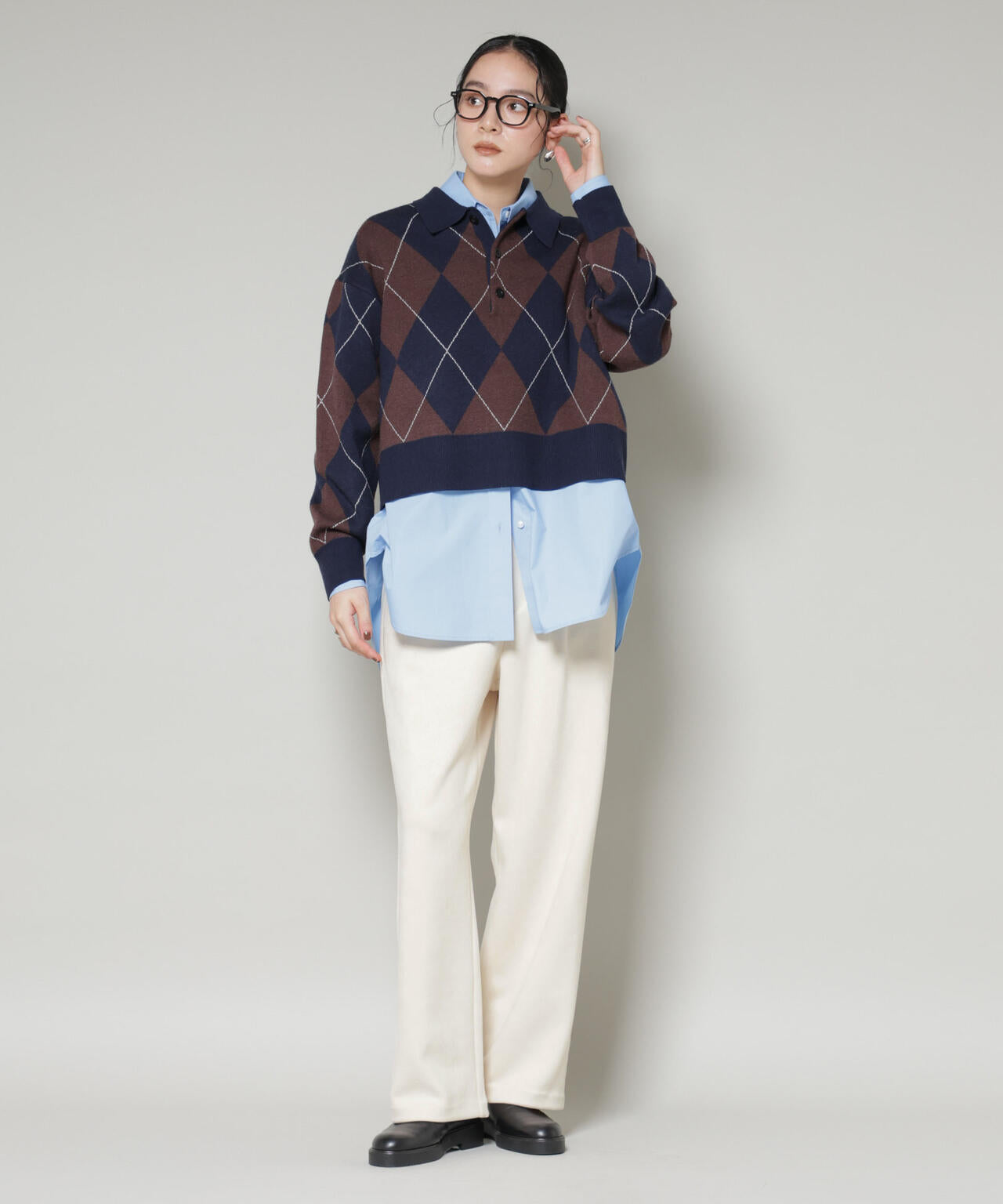 ・優しいカラーリングが冬のスタイリングに重宝するグレーとアイボリー