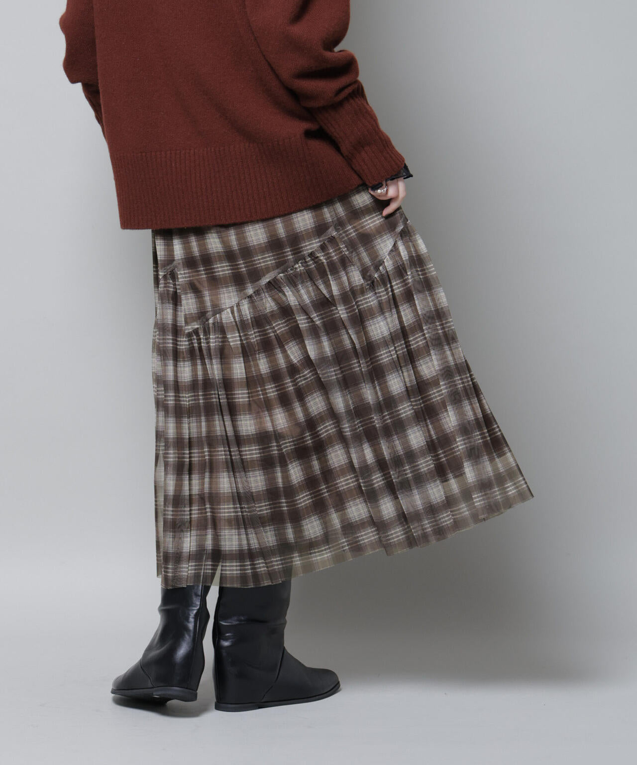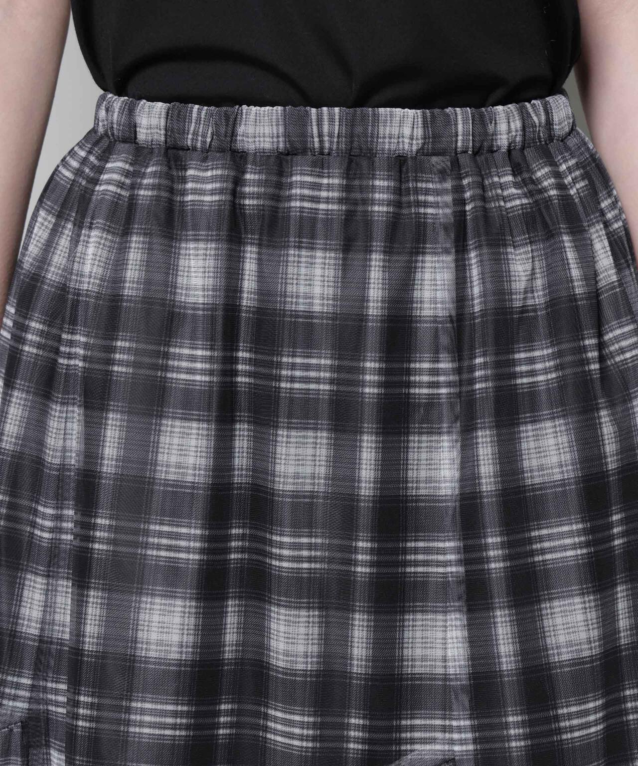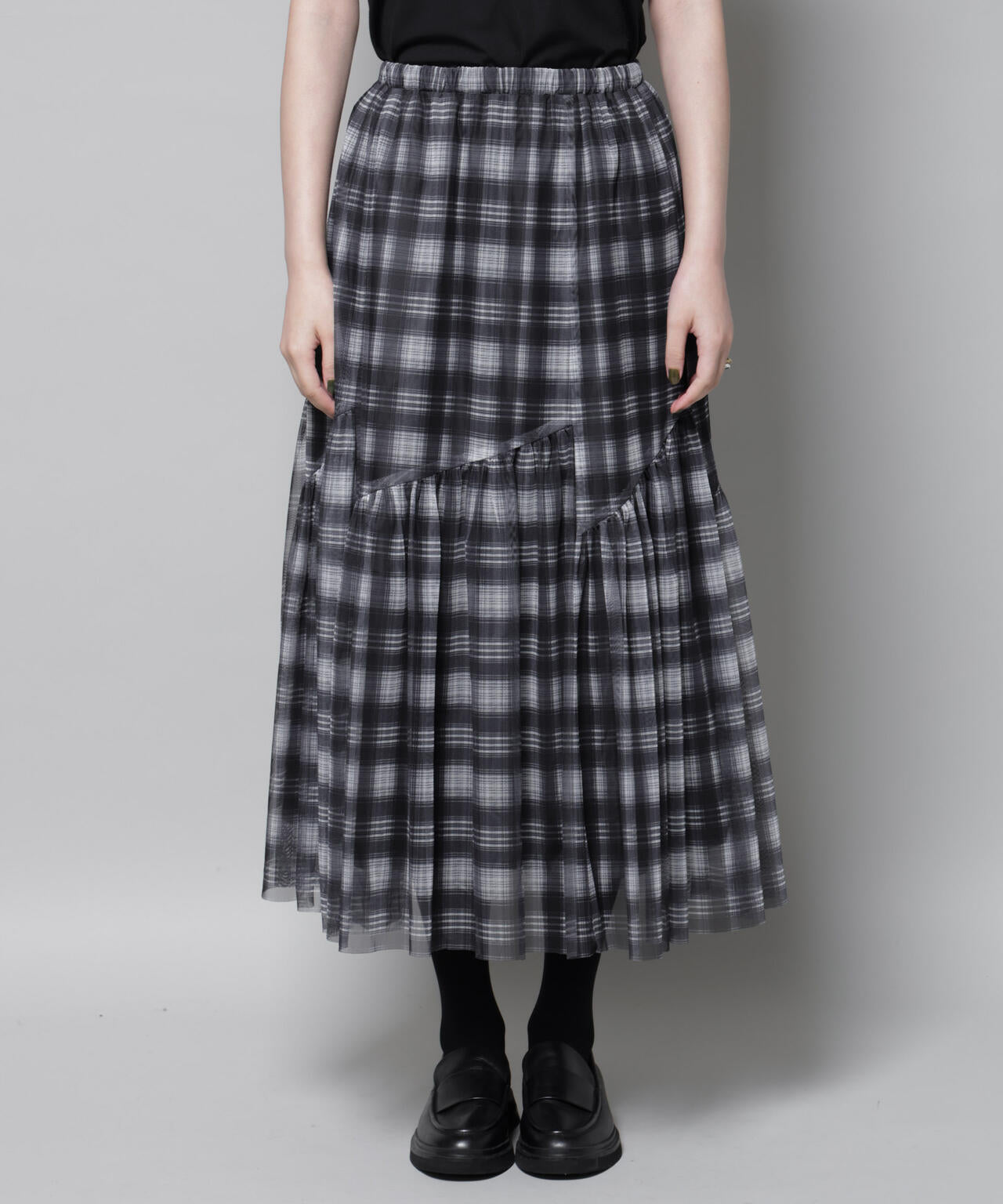 軽やかなネットチュールにオンブレーチェックのプリントを施した、表情豊かなティアードスカート