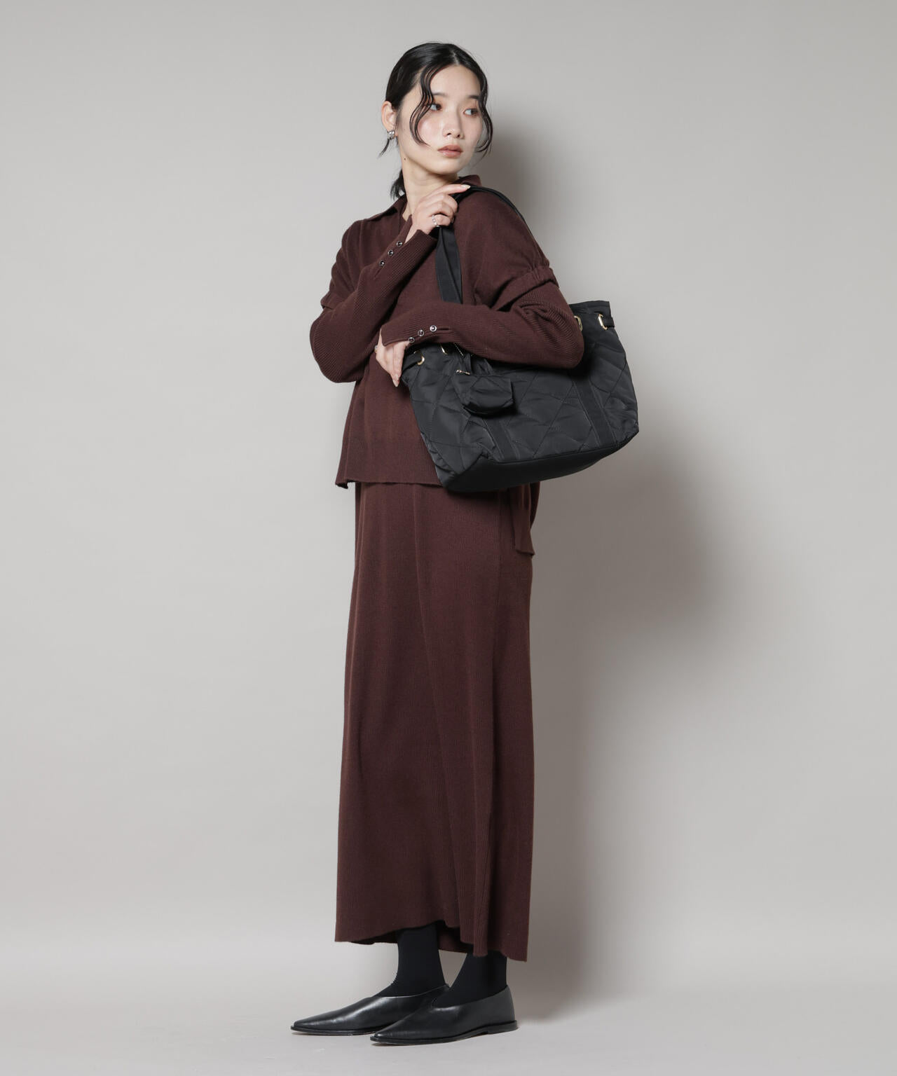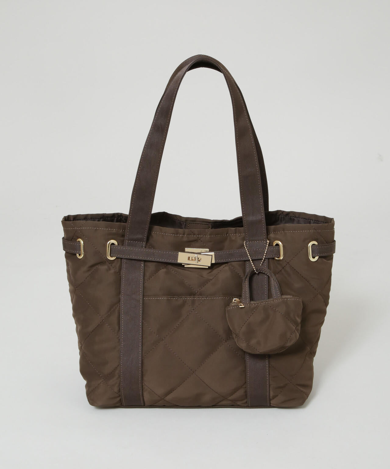 ナイロン素材のキルティング加工が施された、大人の遊び心をくすぐるトートバッグ。ミニチュアサイズのトート型チャームがアクセントとなり、Y2Kライクなテイストをプラス。リップやイヤホンなど小物収納にも使えて、見た目の可愛さと実用性を兼ね備えたひと品です。
