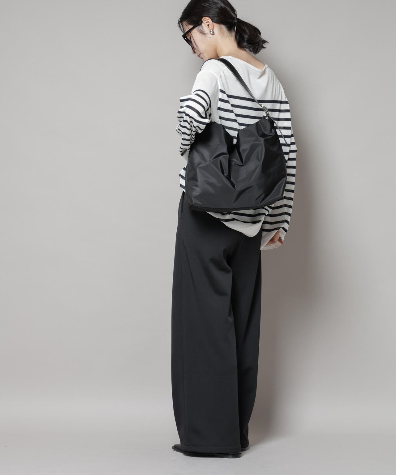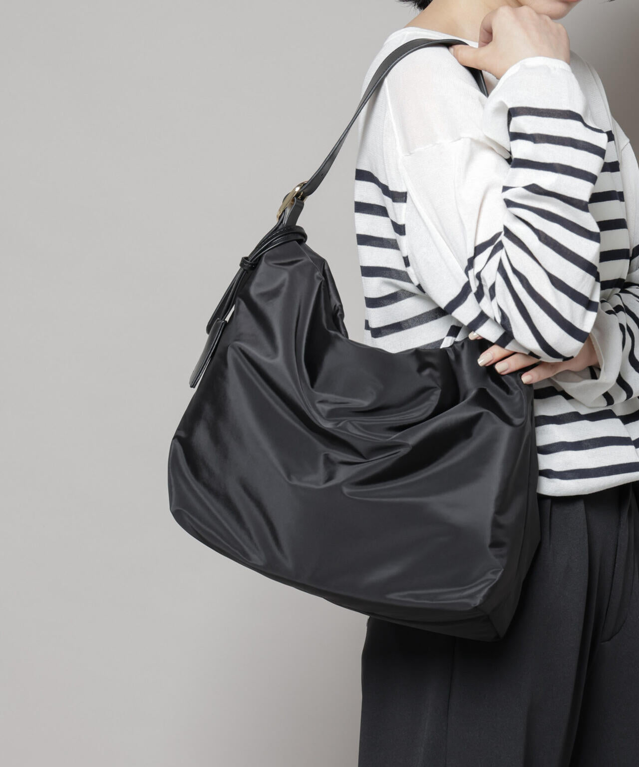 高密度でハリのあるナイロン素材を使用し、程よい光沢感と軽さを両立