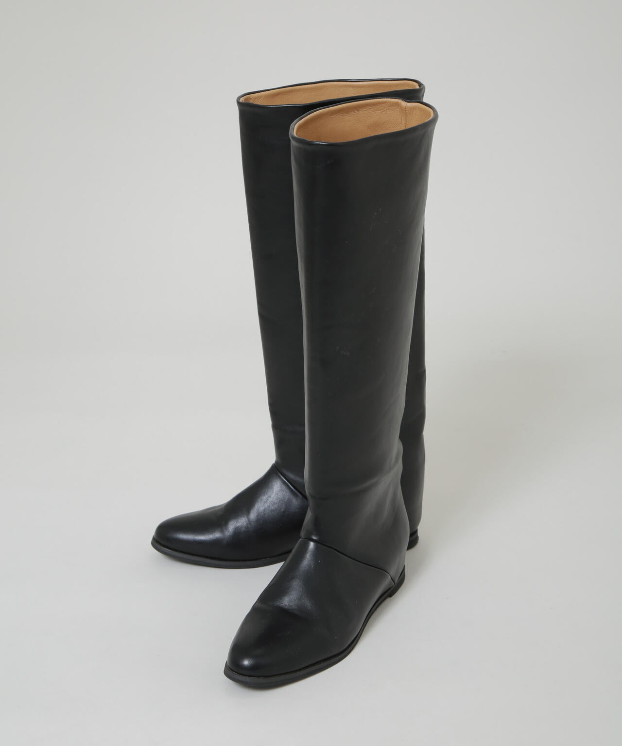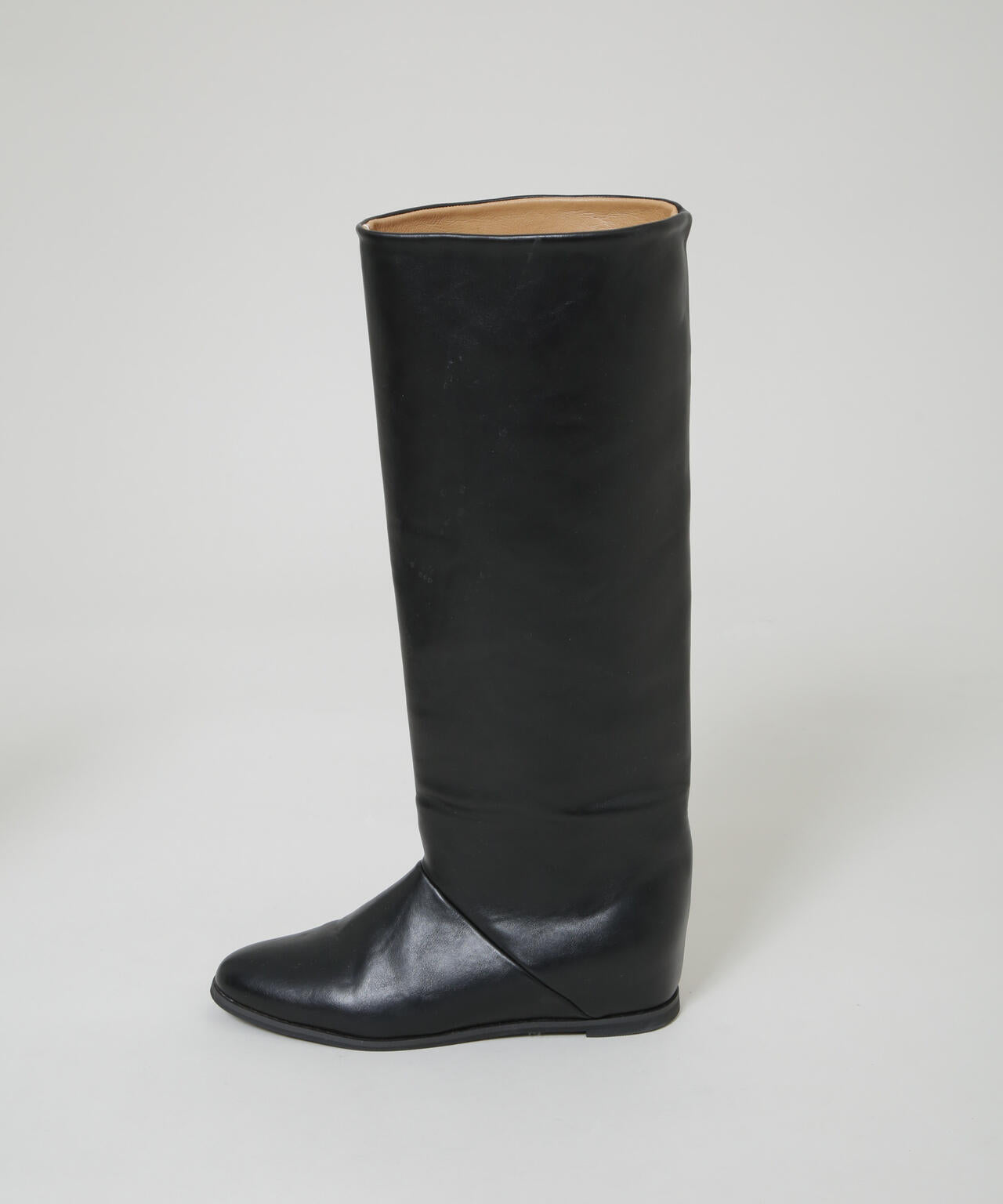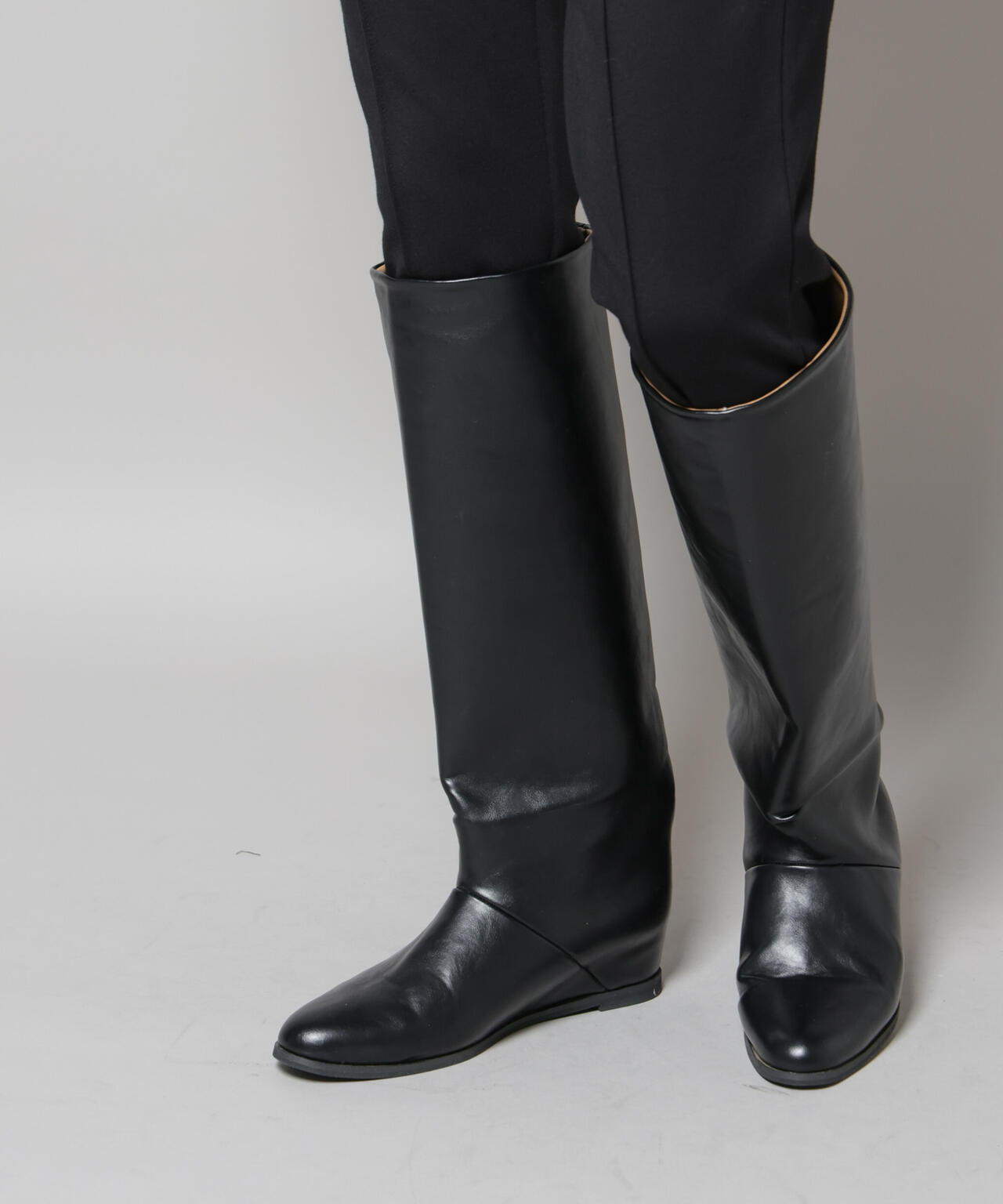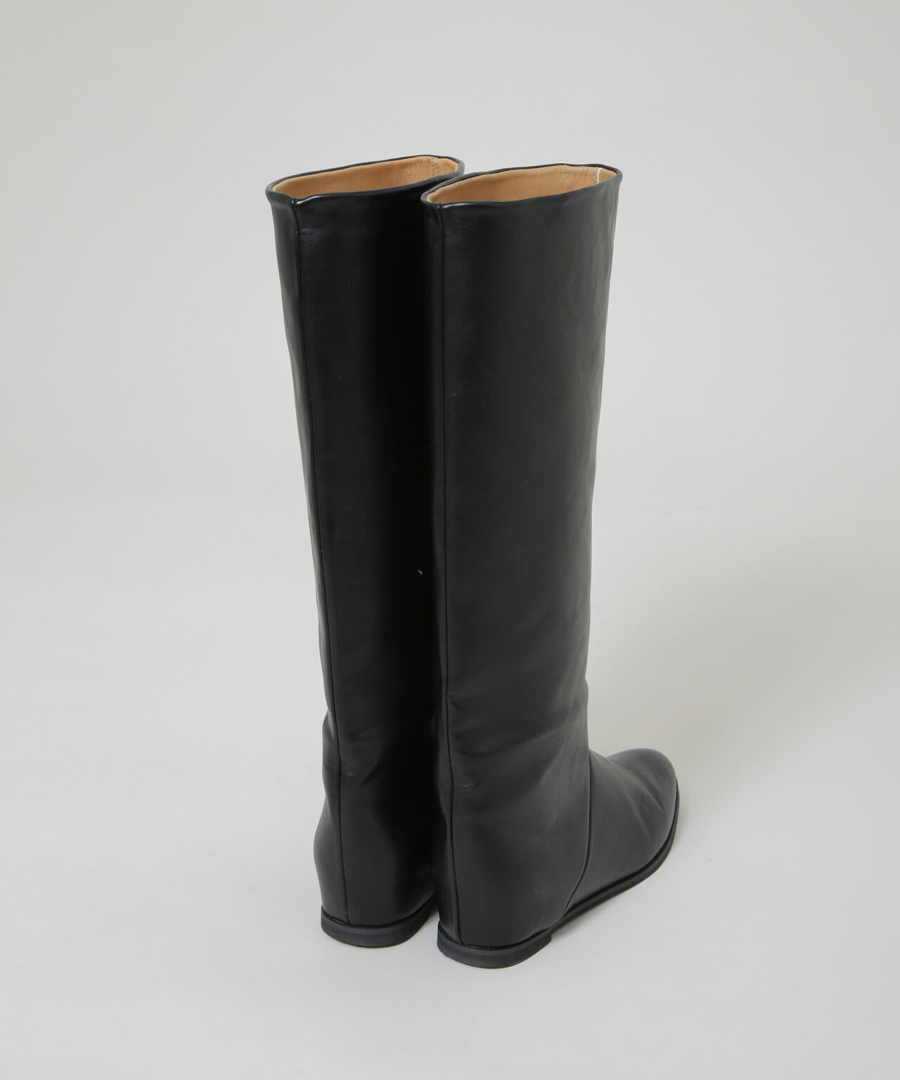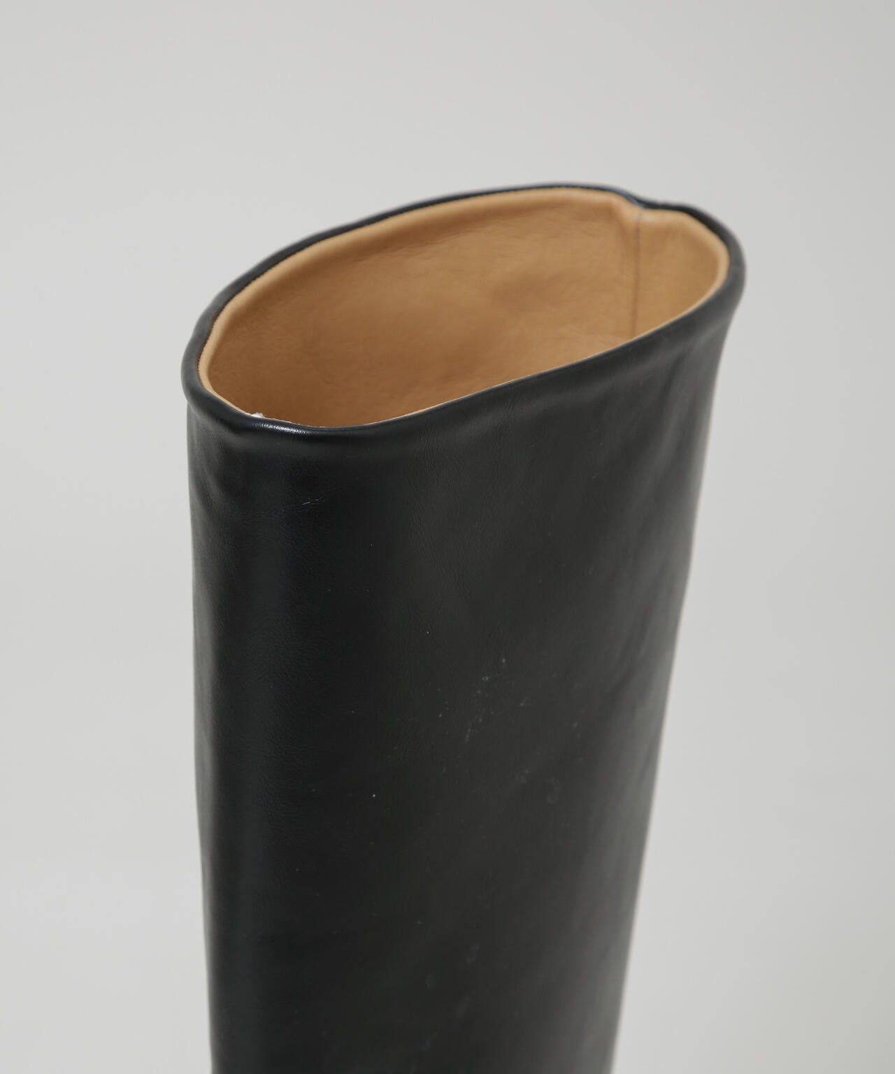 ブーツ全体がストンとしたストレートシルエットのロングブーツ。履き口から足首までほぼ同じ筒幅で、縦のラインを強調することで脚をすっきり長く見せてくれる一足です。