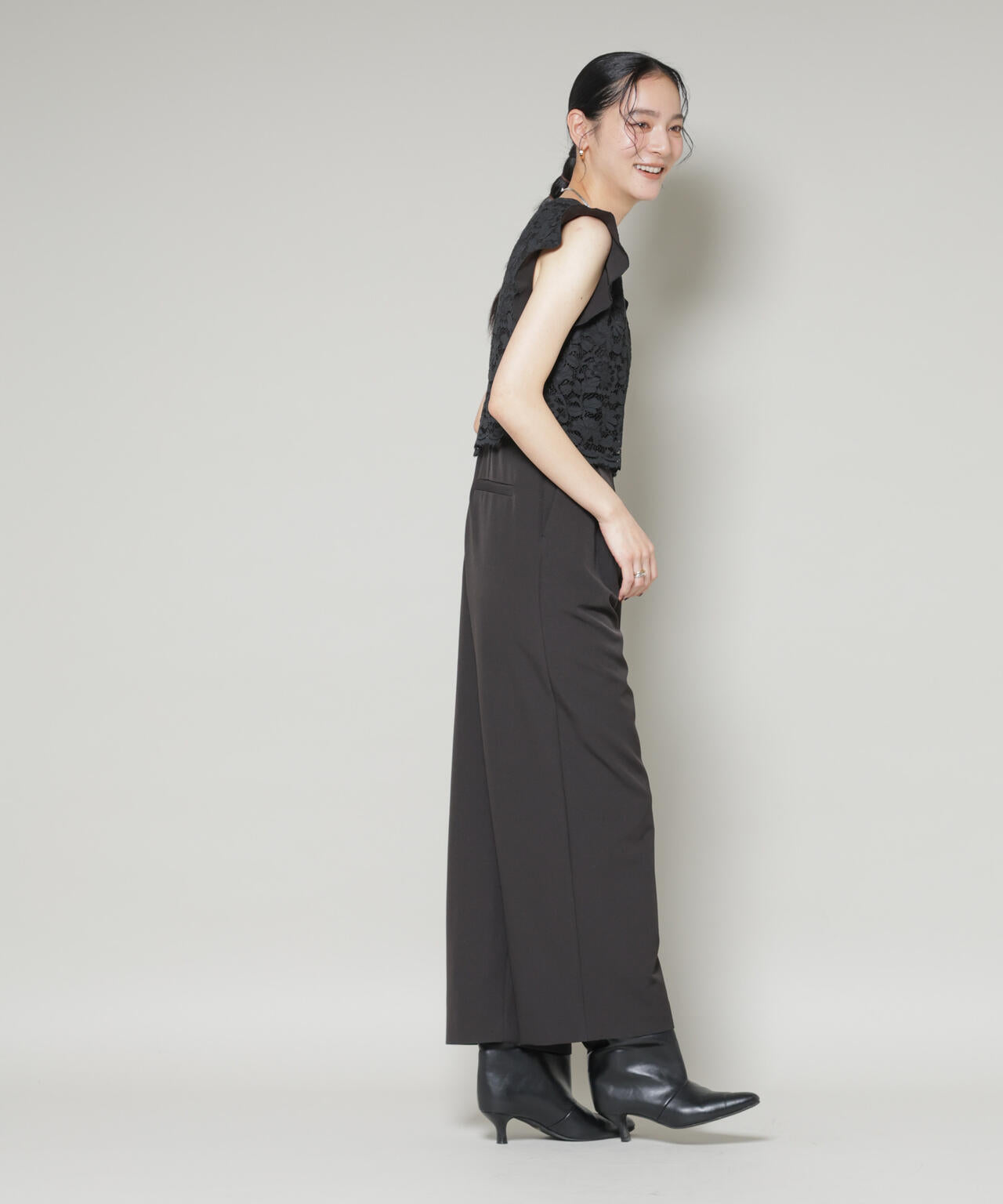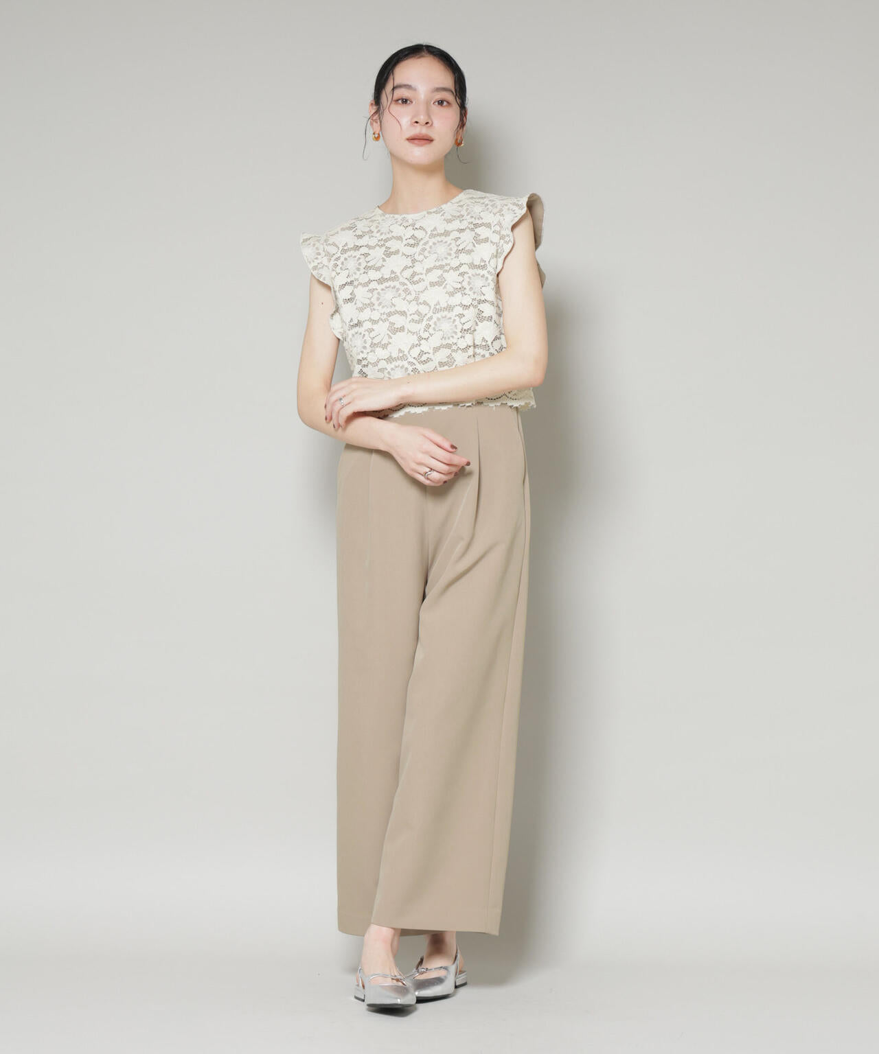 繊細なレーストップスをドッキングしたオールインワン。大人フェミニンな要素をプラスしたデザインで、オケージョンシーンからお呼ばれ、セレモニーまで幅広く重宝する一着です。