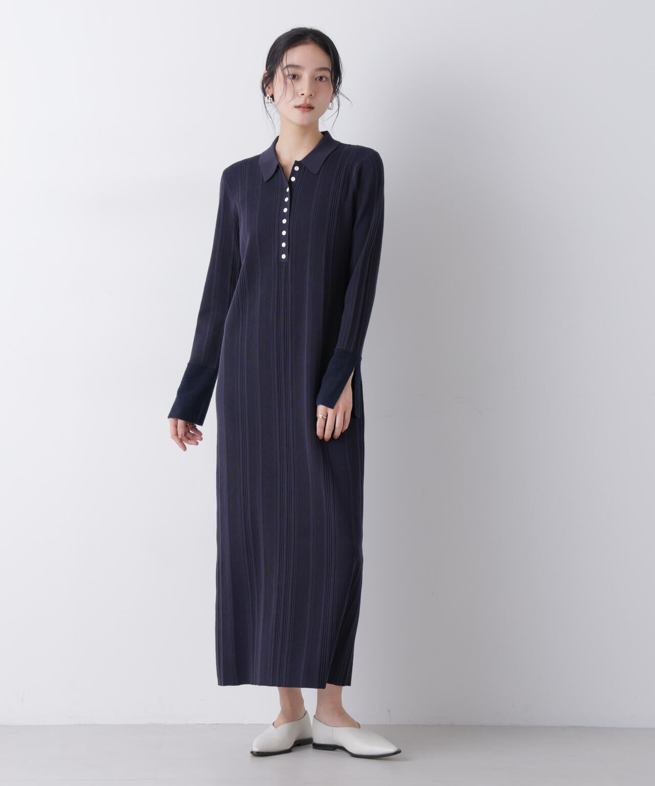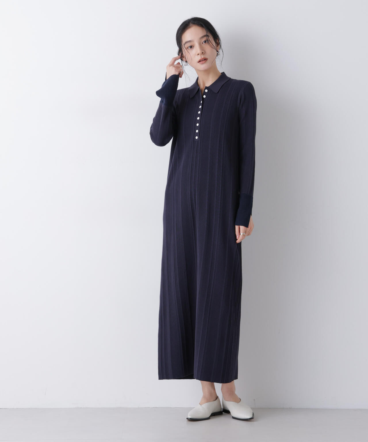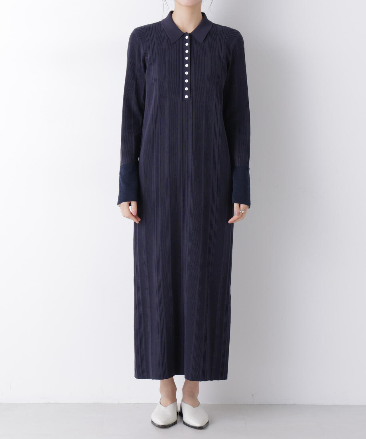 ランダムリブで編み立てたハイゲージのニットワンピース